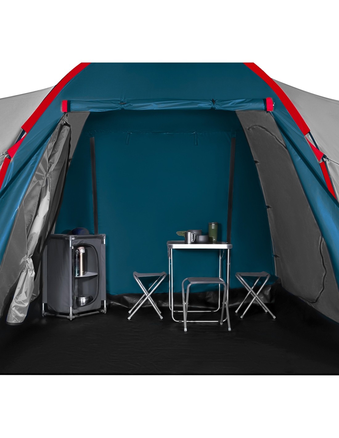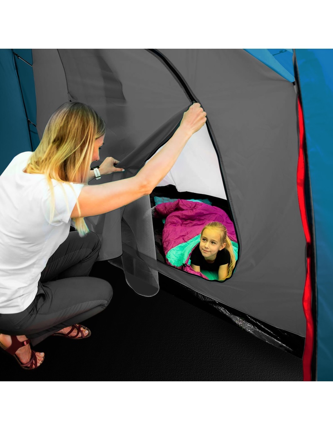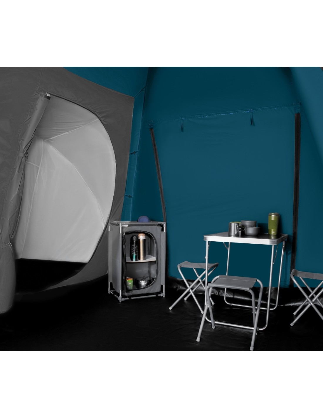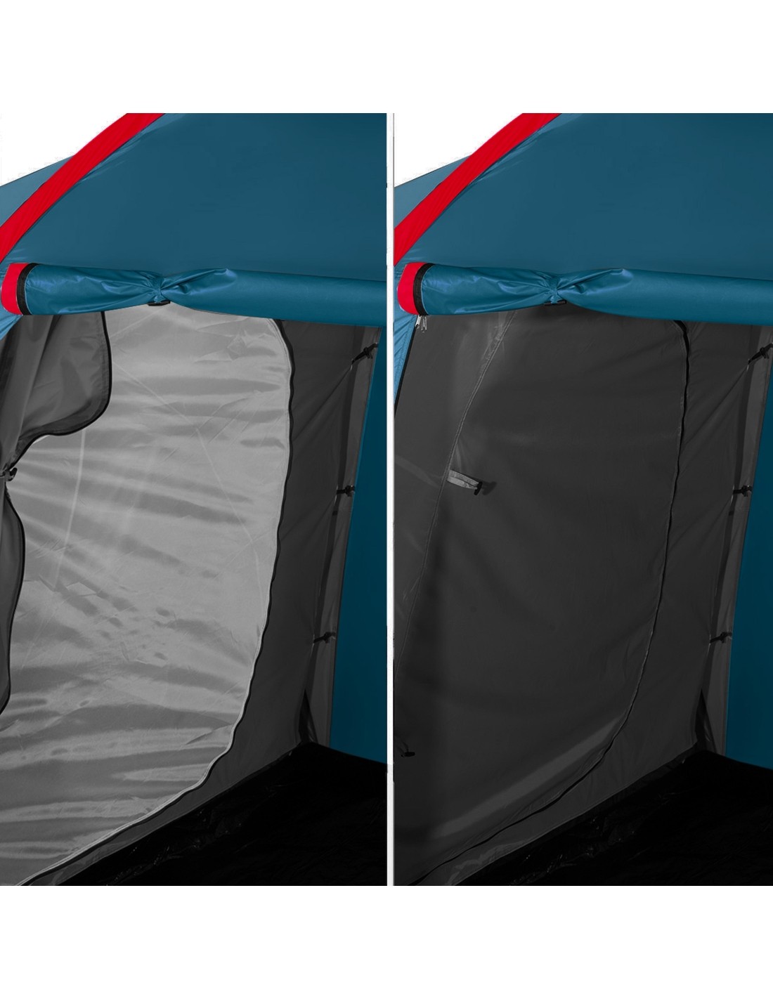 The breathable bedroom walls, mosquito nets and rear ventilation openings ensure excellent air circulation. This keeps the inside of the tent fresh, promoting regeneration and comfortable rest.