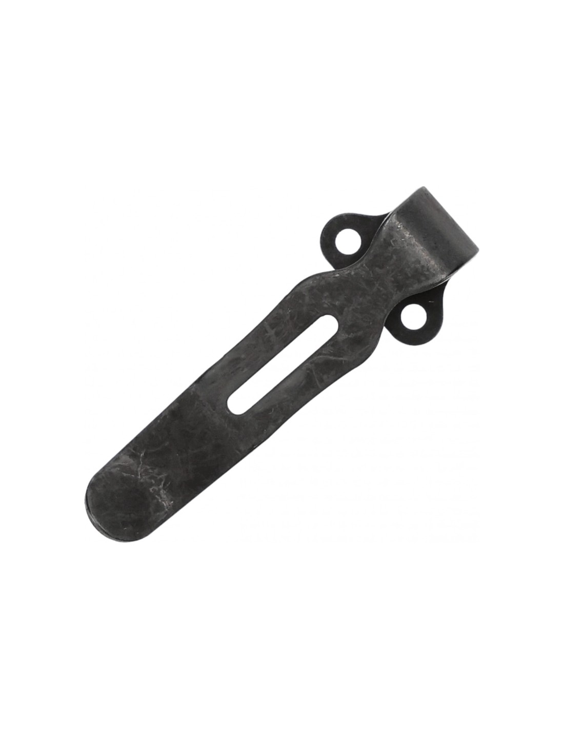 The clip is made of stainless steel and coated with black oxide. It is an interesting alternative to the factory clip, because when mounted the knife lies deeper in the pocket the so-called deep carry. The set does not include mounting screws.