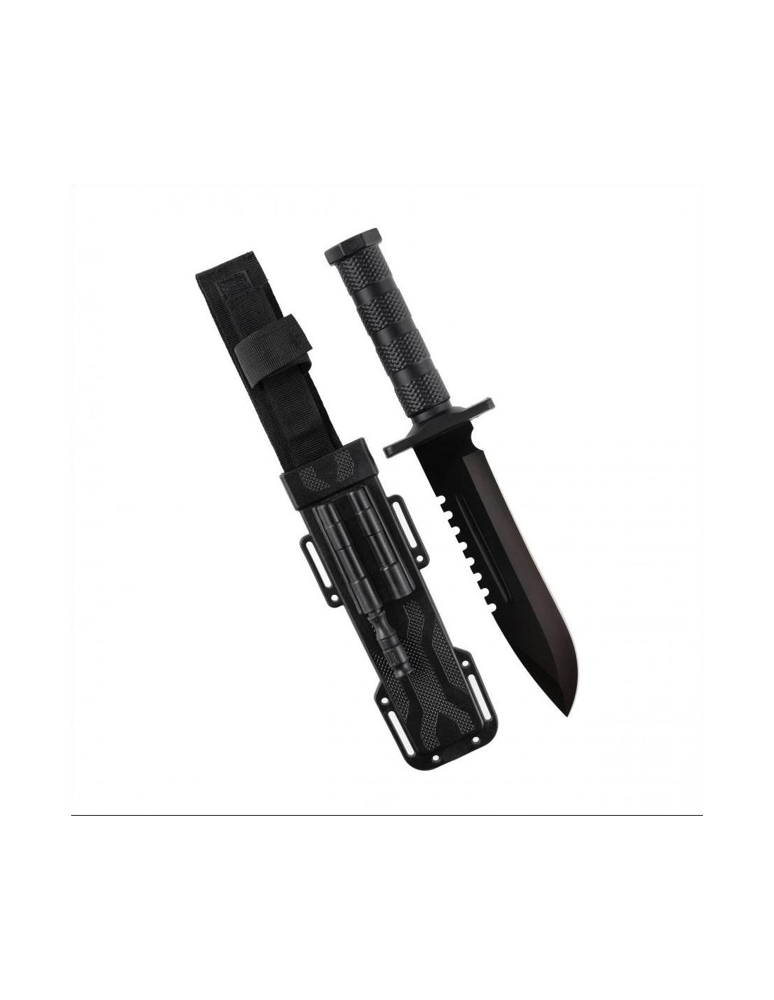The knife comes with a comfortable scabbard, made of a blend of polymer and cordura. Thanks to the belt loop and Velcro, it can be easily attached and carried.