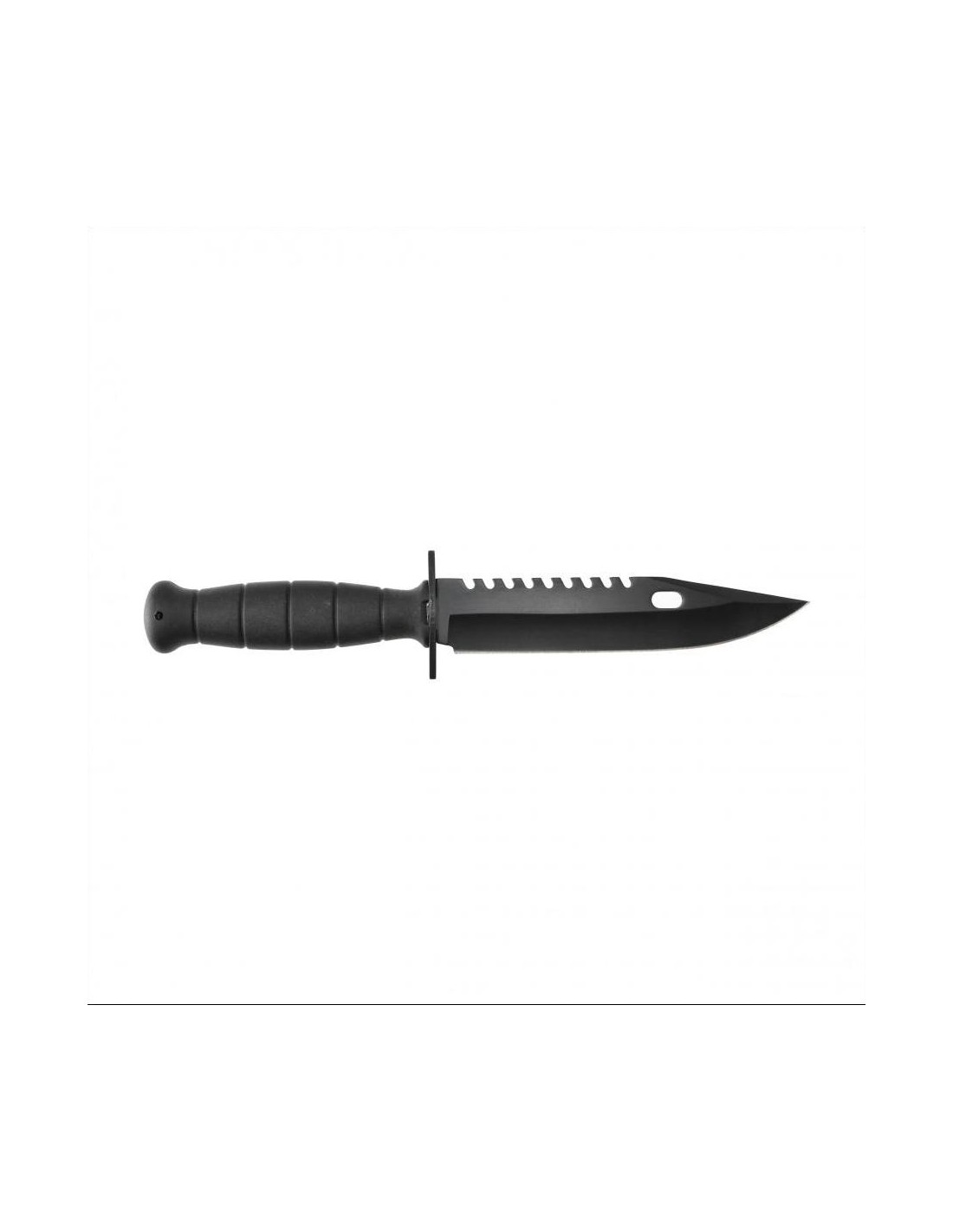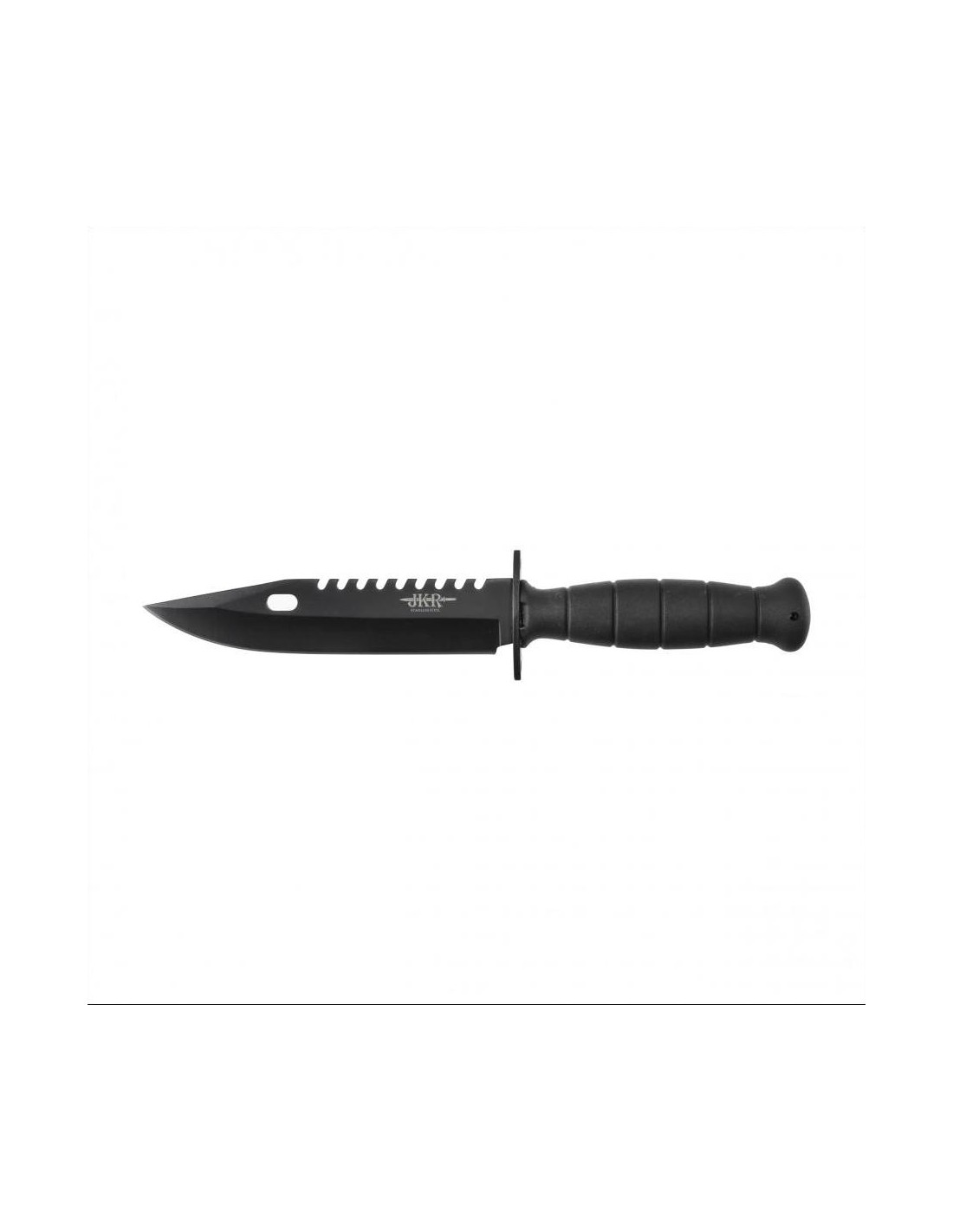 The blade is coated with a protective coating that resists scratches and reduces reflections. The contoured handle, with linings of durable ABS plastic in black, provides a secure grip. The double-sided hilt shields the hand from slipping on the blade during heavier work.