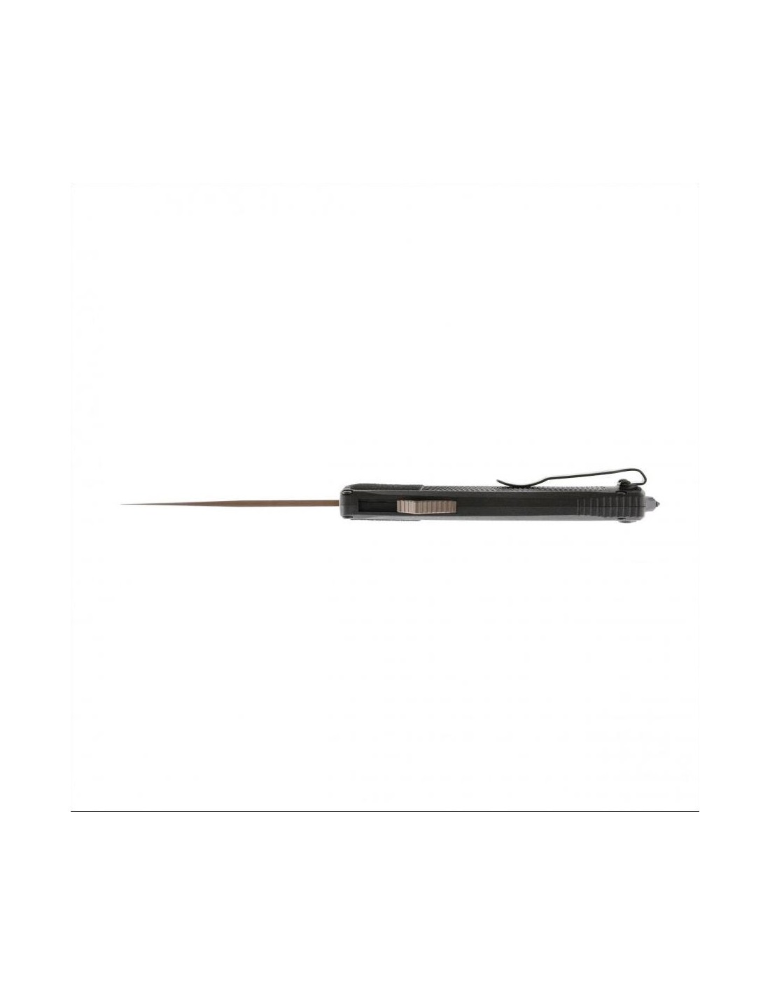 The Benchmade Shootout is a Double Action OTF automatic knife. Which means that both the process of extending and retracting the blade is done automatically. Thanks to such functionality, the knife can be easily and quickly unfolded under stress also with a "weak hand". The blade is unfolded by moving the massive slider forward, folding only requires reversing the slider in the opposite direction.