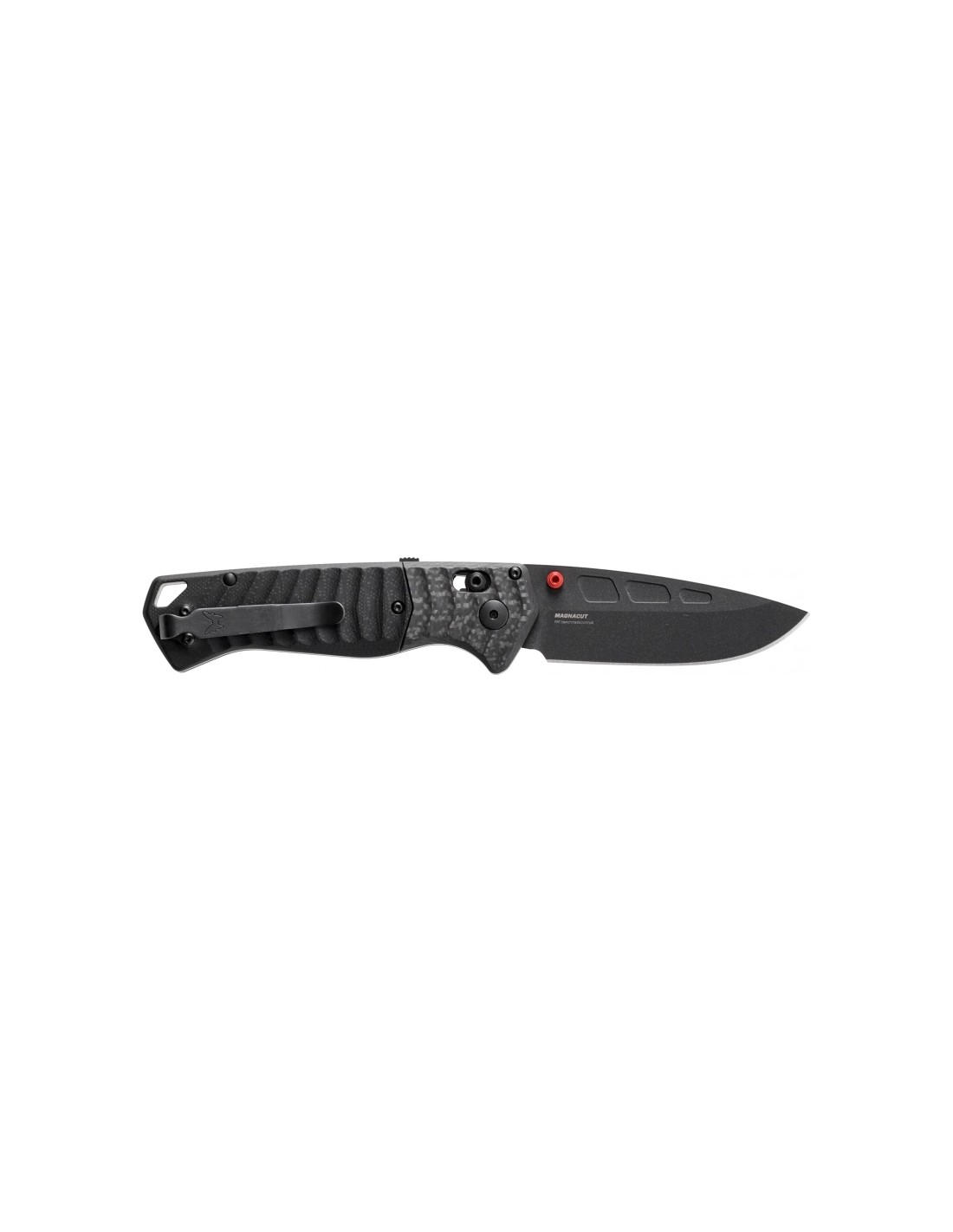 - The Drop Point blade was forged from CPM-MagnaCut stainless steel, hardened to 60-62 HRC.