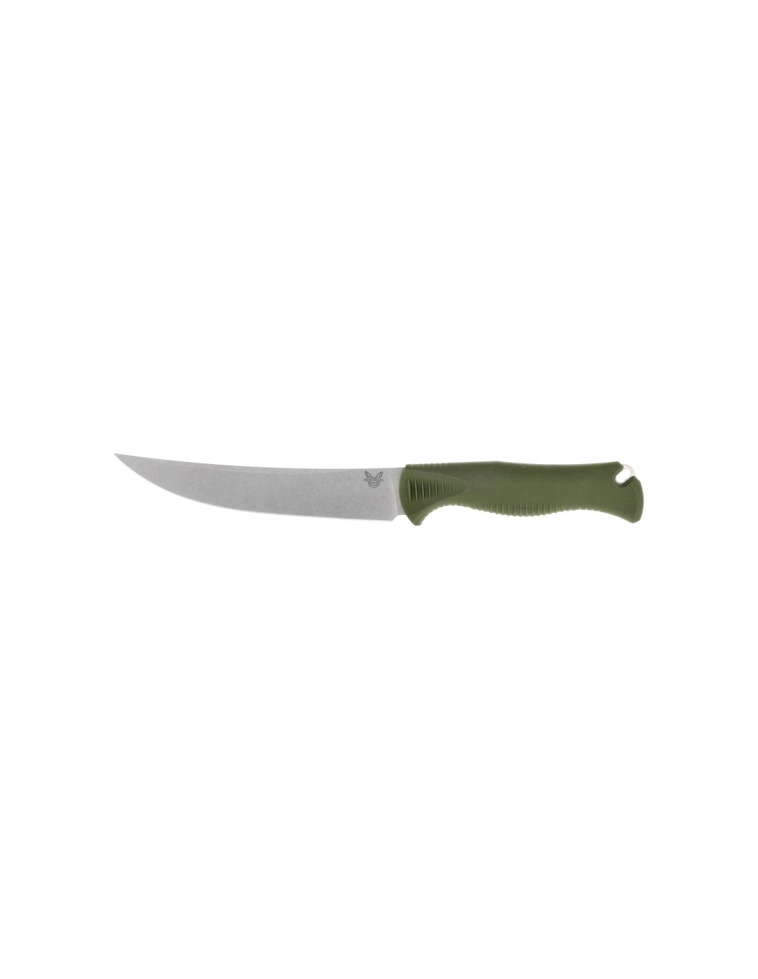The Benchmade 15500-04 Meatcrafter uses a Trailing Point type blade. The characteristic feature of such a blade is a slightly raised tip above (or in line with) the back of the knife. The flexible head modeled after oriental scimitars has a blade with a distinctly exposed belly, which contributes to excellent performance and ease of cutting. Thanks to its 28° SelectEdge™ technology (14° per side), the knife has a thin, perfectly sharp cutting edge that excels at precision cutting, slicing, filleting and boning meat. As a result, the Meatcrafter guarantees extremely clean cuts and causes much less force to be put into the work being done.