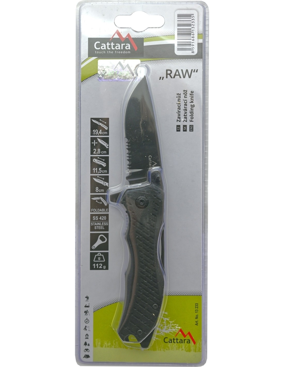 Cattara oferuje również inne artykuły biwakowe, takie jak: składane kelnerki, kuchenki biwakowe, sztućce i naczynia, noże składane i wielofunkcyjne.