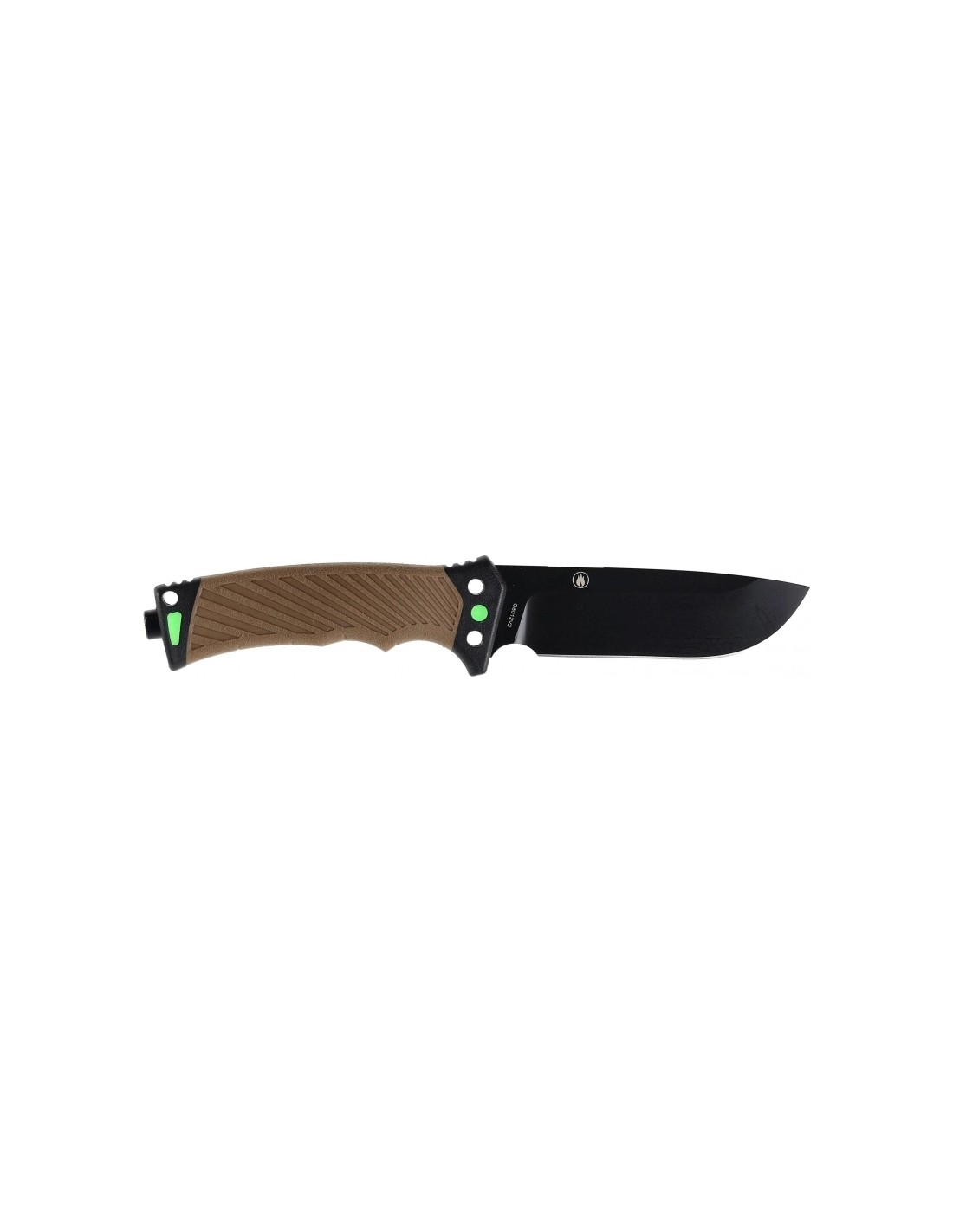 The long cutting edge makes working with this knife a pleasure. The element that distinguishes the knife is its modular design, so that after unscrewing the steel bolt (in the back of the tang) we can slide the blade out of the handle and use it, for example, to make an improvised spear. The blade locking nut also functions as a beater and glass breaker used during rescue operations. The contoured polymer handle has finger cutouts and slanted ribbing to improve the knife's grip. A hole in the handle was used to weave in a paracord cord, which of course can be replaced with another accessory. Visibility inserts have been placed on the handle to help locate a lost knife.