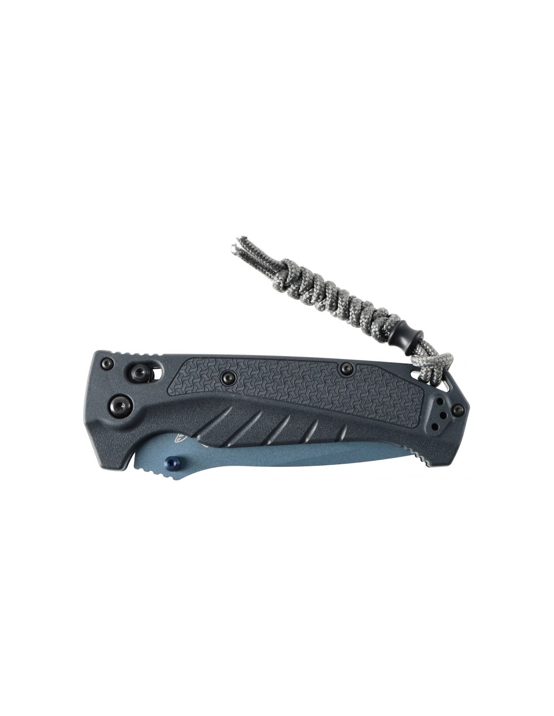 There is also a hole in the handle for attaching a rope or paracord braid. Together with the Benchmade folder, the user receives a paracord sling in orange.