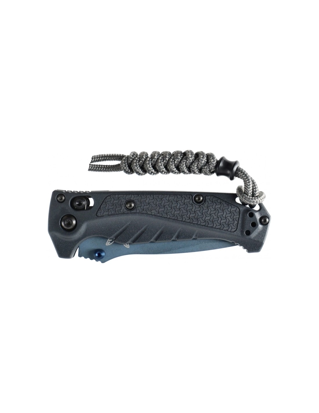 There is also a hole in the handle for attaching a rope or paracord braid. Together with the Benchmade folder, the user receives a paracord sling in orange.