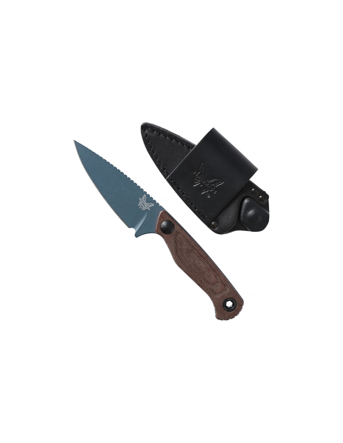 The Benchmade knife's handle made of brown Canvas Micarta provides not only exceptional durability, but also comfort in multi-position grips. Thanks to the deep finger grooves, the knife sits securely in the hand, even during intense work. Micarta is known for its high resistance to moisture and provides a secure grip in all weather conditions.