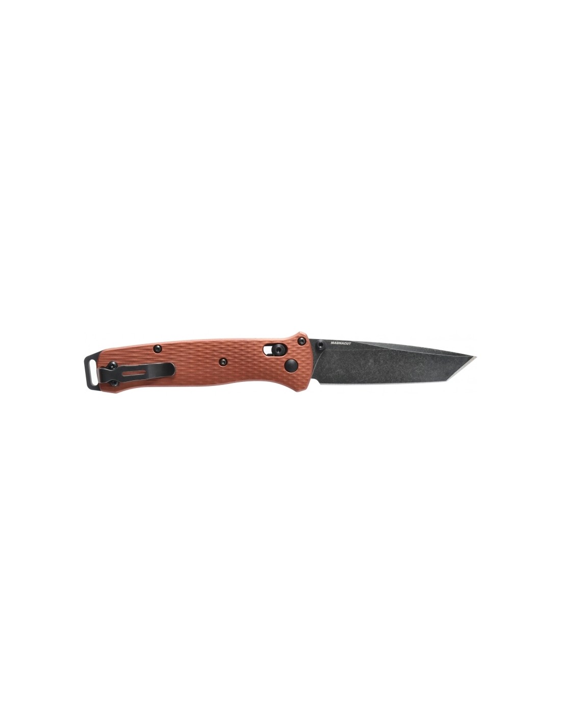 The enchmade 537BK-07 Bailout the ultra-lightweight and rugged black class tactical knife features a CPM MagnaCut powder steel tanto blade, an aluminum taper and aggressively textured 6061-T6 aluminum facings. The perfect combination of tactical power and ultralight construction, the Benchmade folder weighs just 76.5 grams.