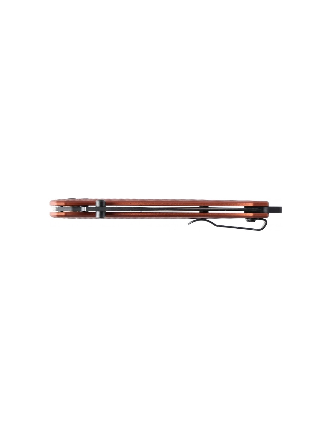 Thanks to the use of aircraft-grade 6061-T6 aluminum facings, the knife's construction is extremely lightweight (76.5 g) and much more durable. The aggressive texturing of the handle and its widening at the base ensure a firm grip on the knife during use.