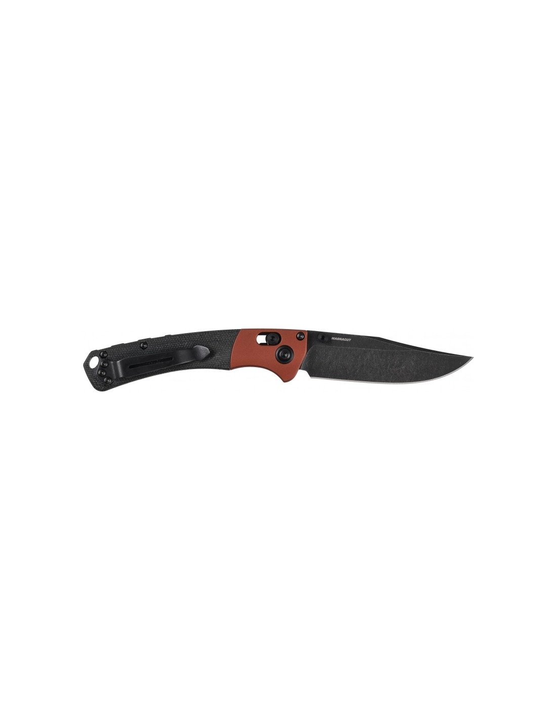The Benchmade 15080BK-04 Mini Crooked is a multi-purpose folding knife made by the renowned American brand Benchmade . The knife has a Clip Point profile blade made of CPM MagnaCut steel and is equipped with non-slip and good-feeling Micarta liners. The model comes in an elegant black/copper color .