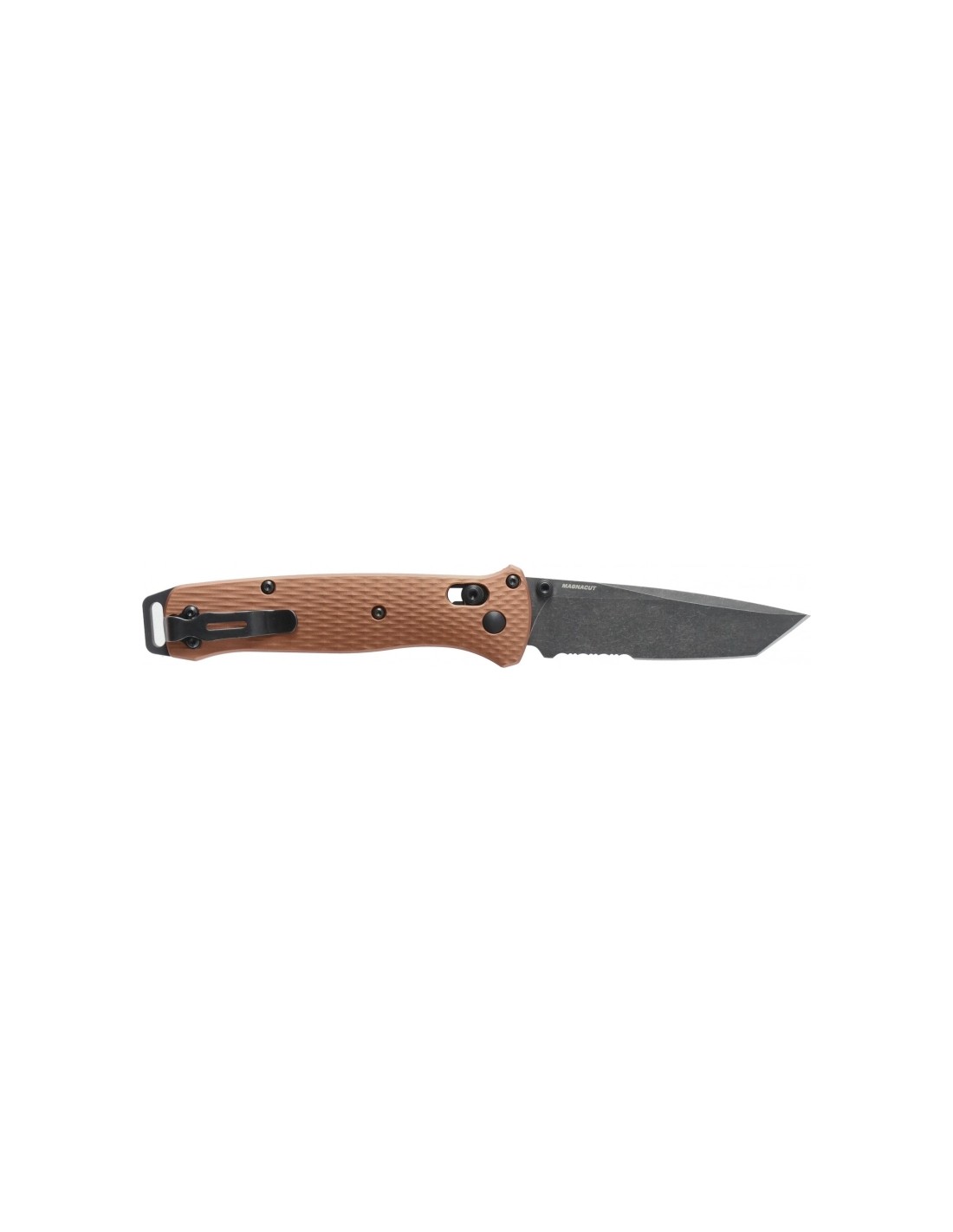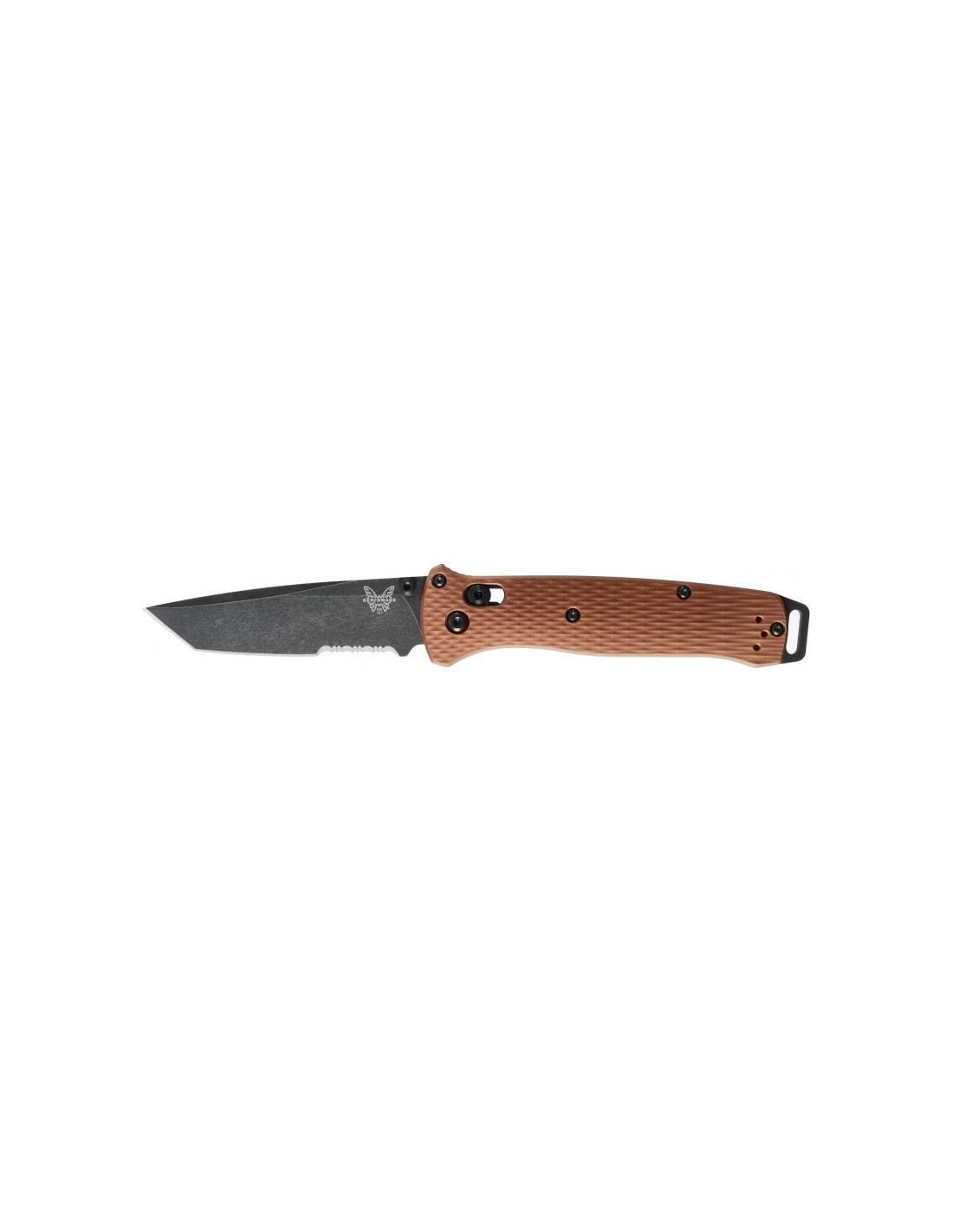 The Benchmade 537SBK-07 Bailout the ultra-lightweight and rugged "black class" tactical knife features a CPM MagnaCut powder steel tanto blade, an aluminum tang and aggressively textured 6061-T6 aluminum facings.A perfect combination of tactical power and ultra-lightweight design, the Benchmade folder weighs just 76.5 grams.