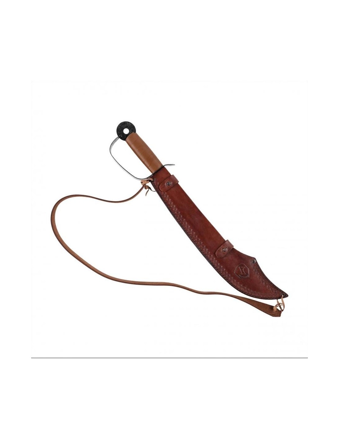 Along with the machete, the user receives a high-quality, handmade leather scabbard in brown color. The scabbard has a handle that allows you to put it over your shoulder.