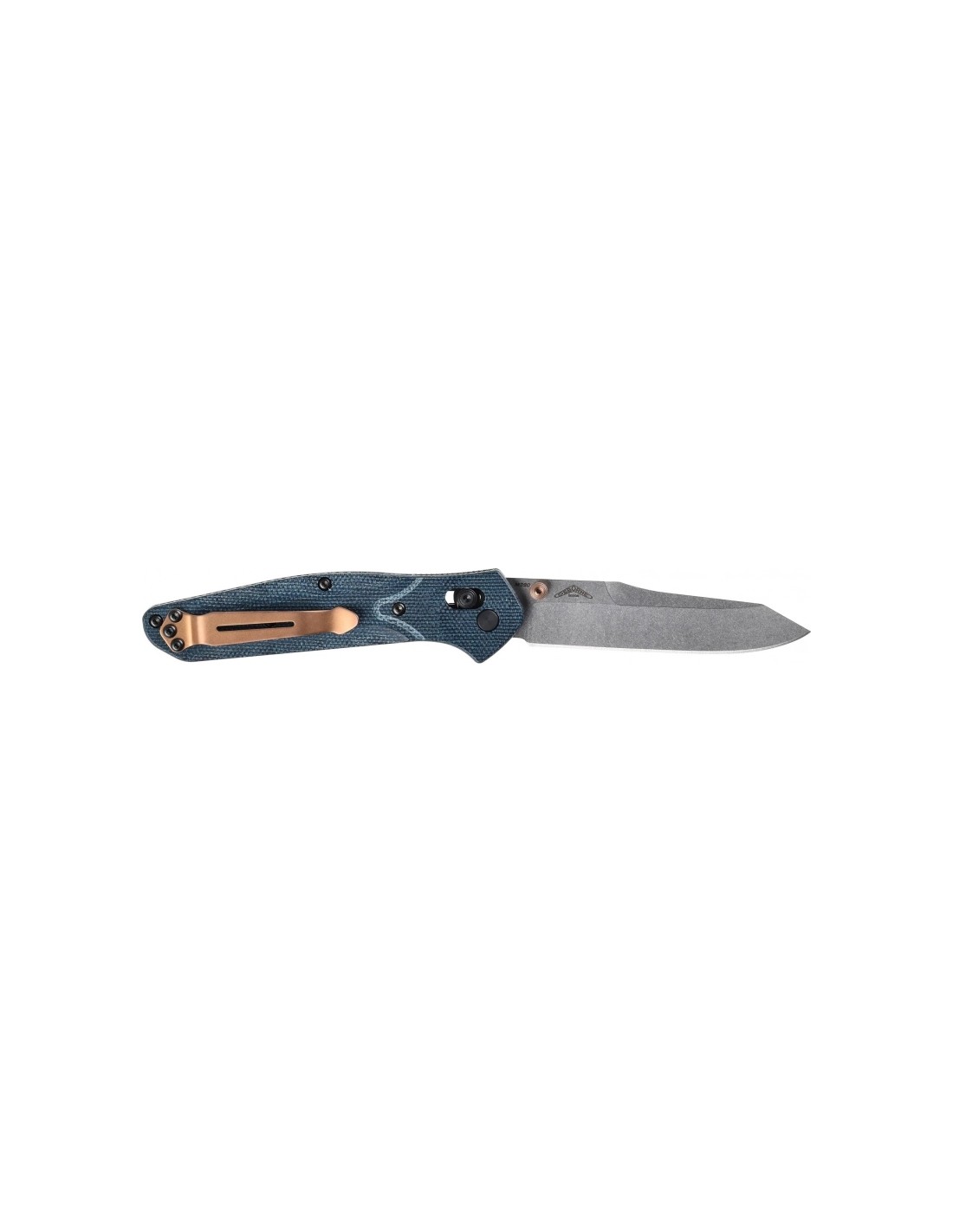 The Benchmade Osborne Folder has handle facings made of navy blue Denim Mircarta - a composite made by combining pressure-pressed canvas with synthetic resin. The rough texture and smooth edges of the linings make the knife feel good in the hand. The material is resistant to moisture, wear and changeable weather conditions, while over the years it takes on an individual character, like your favorite jeans.