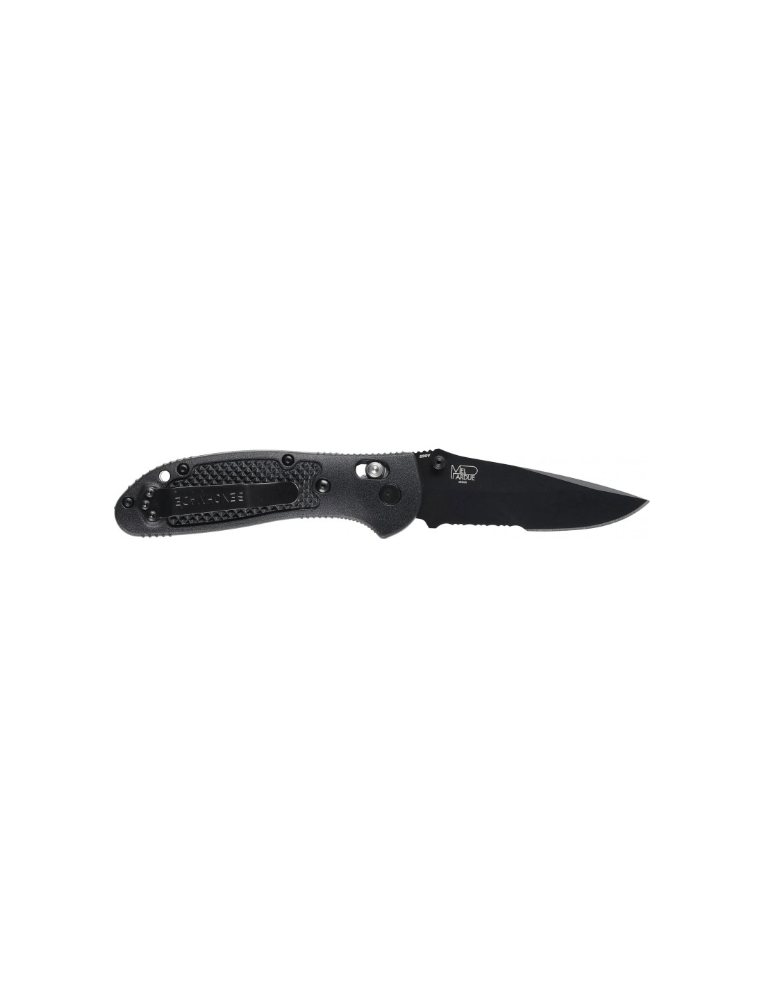 The Benchmade 551 SBK-S30V Griptilian is a functional folding knife from the renowned manufacturer, which is equipped with a blade made of CPM-S30V steel , widely considered to be the best stainless steel on the market for use in EDC knives .The distinguishing feature of this model is a section of the blade's back, which has been raised and grooved, thus creating a stable point of support for the thumb during precision cutting. The model has a partially serrated blade (Combo) with a black coating. The handle is also black in color.