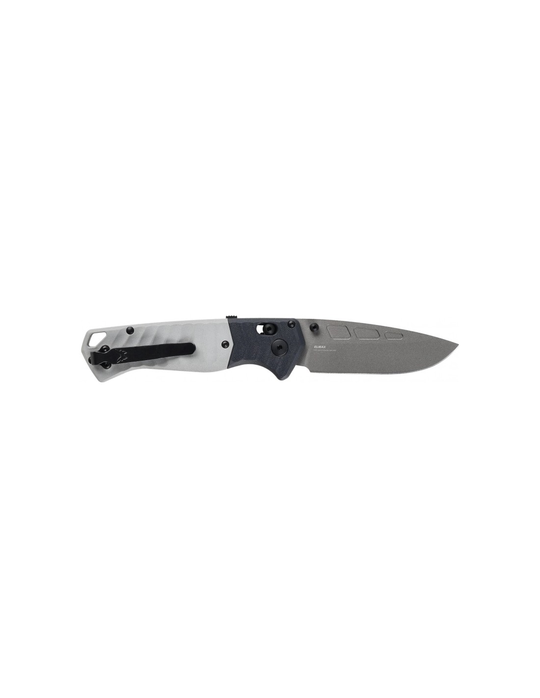 The Benchmade 593GY 02 PSK knife is equipped with an Elmax stainless steel blade and hardened to 59 - 61 HRC, which has been additionally coated with Cerakote protective coating.