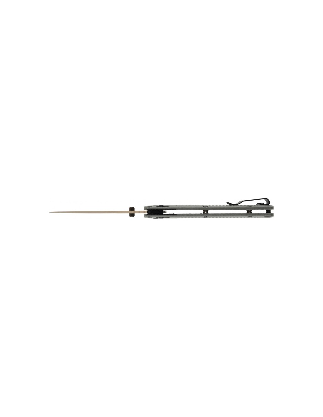 The knife is equipped with an Elmax stainless steel blade with a hardening of 59 - 61 HRC, which has been additionally coated with a Cerakote protective coating.