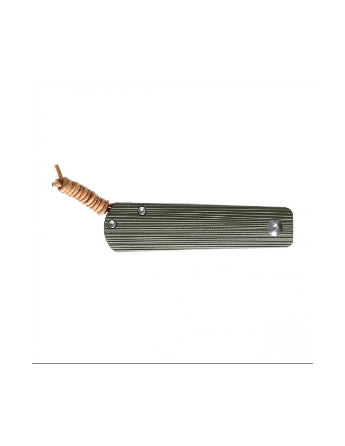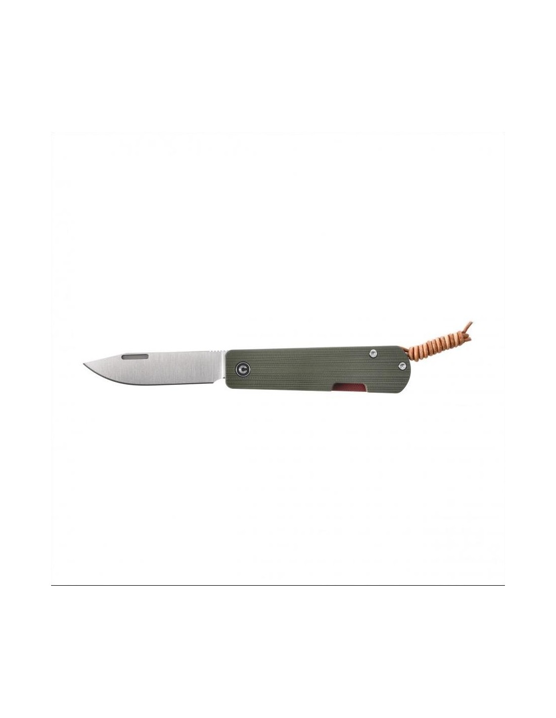 The knife uses G10 composite handlelinings .It isa durable and lightweight composite made of glass-epoxy laminate. It is characterized by high resistance to moisture, chemicals and extreme temperatures. In addition, the textured surface translates into a firm grip, which further increases control of the knife during use.At the end of the handle is a hole for aparacord or lanyard.
