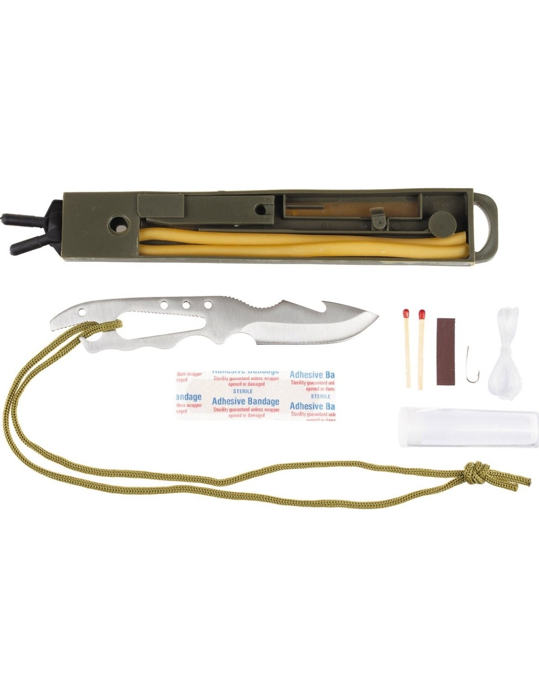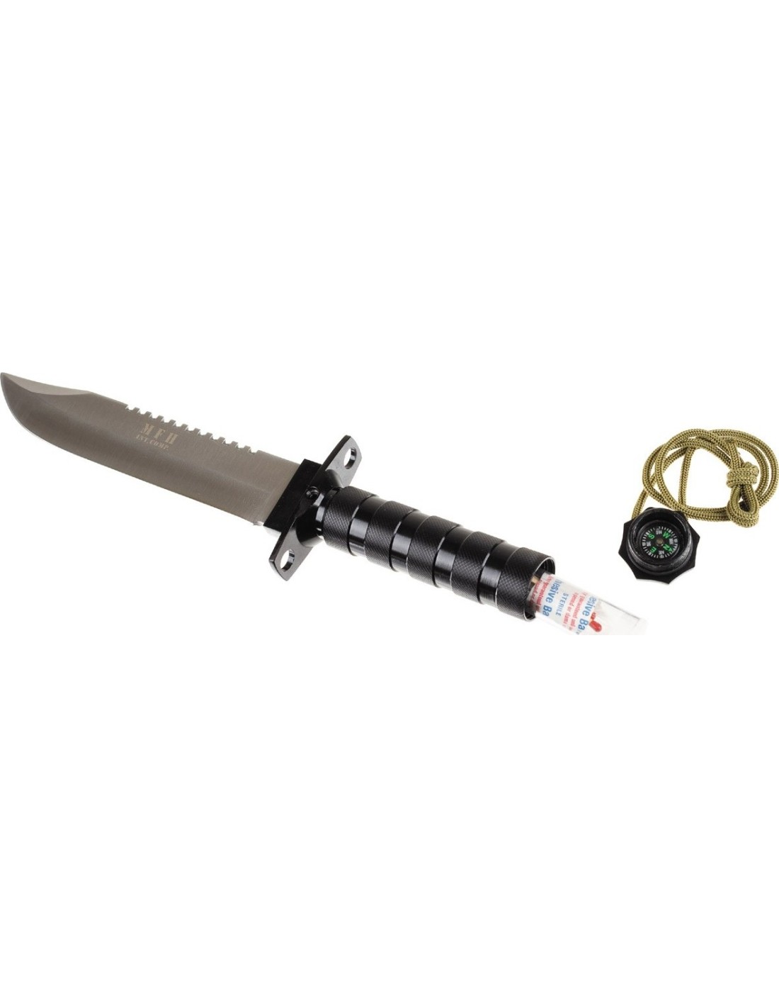 - survival gear in the handle: compass, matches, fishhook, fishing line, plaster, cord;