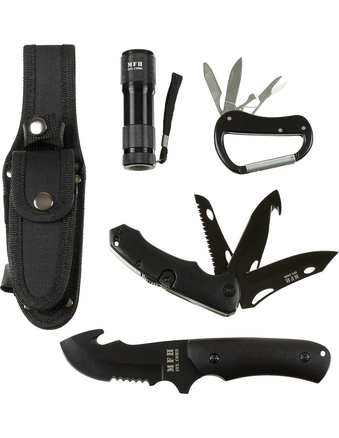 Turystyczny survivalowy outdoorowy zestaw narzędzi noży MFH - Czarny