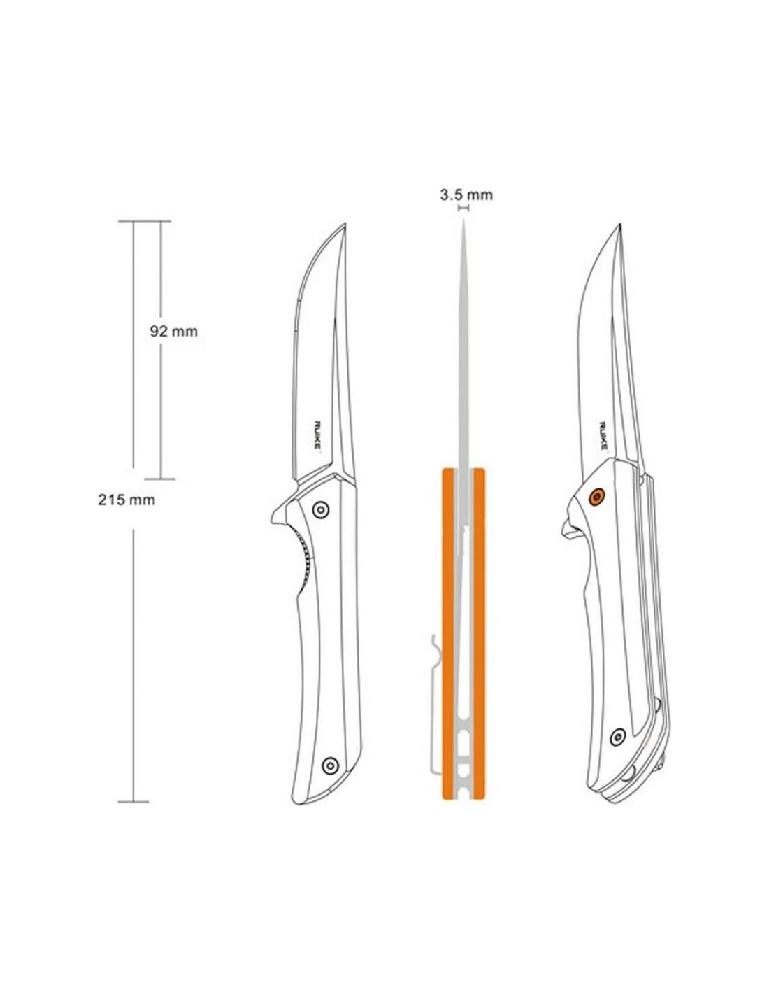 Przedstawiamy nóż Ruike Hussar P121. Rękojeść tego folderu została wykonana z kompozytu G10, dodatkowo dzięki teksturowanej rękojeści nóż pewnie leży w dłoni nawet w najbardziej niesprzyjających warunkach jego użytkowania. Klasyczne ostrze noża zostało wykonane ze stali Sandvik 14C28N, dzięki czemu nóż długo zachowa ostrość i będzie łatwy do naostrzenia. Dzięki blokadzie Liner Lock możemy być pewni, że nóż nie złoży się podczas użytkowania. Folder Ruike Hussar P121 posiada również klips, dzięki któremu możemy go przyczepić do krawędzi kieszeni lub do ekwipunku.