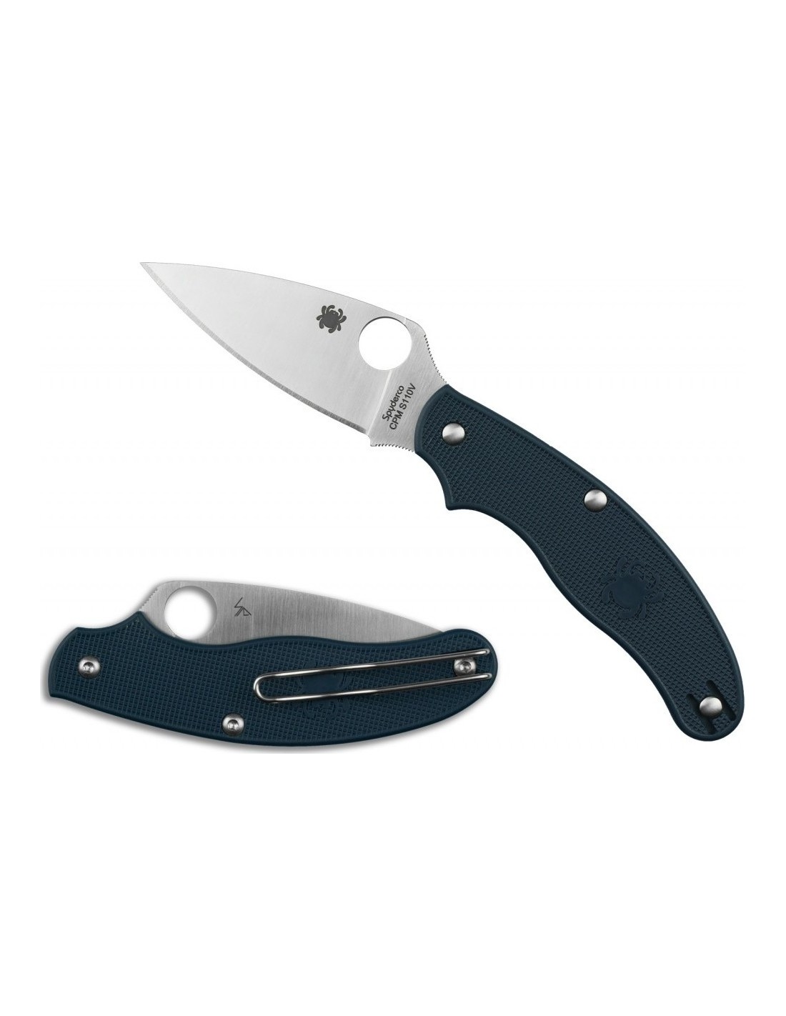 Nowy brytyjski scyzoryk z CPM-S110V i ciemnoniebieskimi łuskami rękojeści FRN Lightweight to pierwsza nowość 2017 roku od Spyderco. Scyzoryk UK firmy Spyderco nie podlega ograniczeniom noszenia noży jednoręcznych w Niemczech. Chociaż ostrze można otworzyć jedną ręką, ostrze nie jest mocno zablokowane / zabezpieczone w stanie otwartym (sliplock).