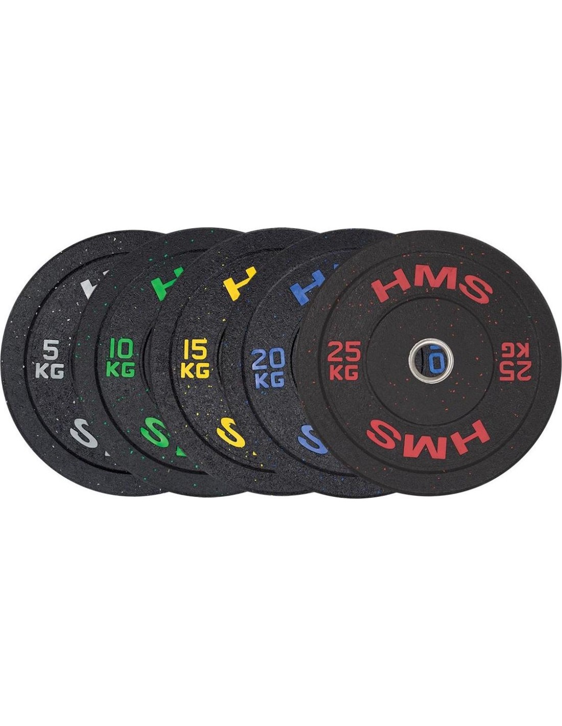 Olympic Plate HTBR 5/10/15/20/25 kg HMS, covered with rubber. Its main advantages are perfect mold, aesthetic finish and a special profile that prevents rotation on the bar.