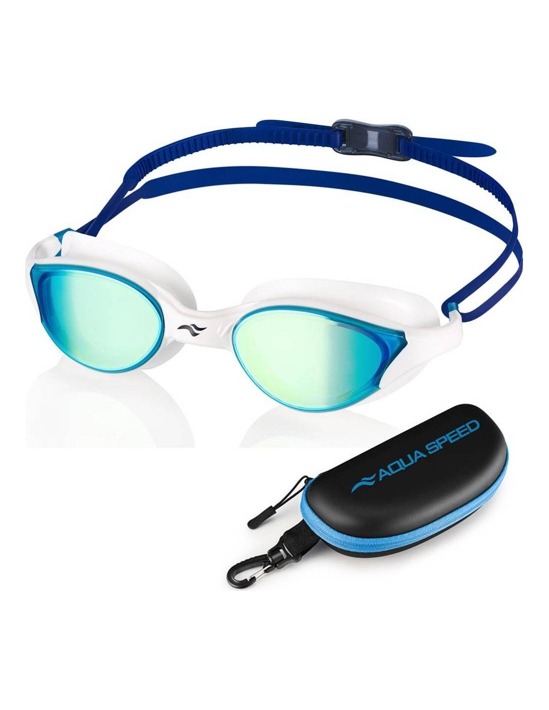 These ultra-modern Vortex Mirror goggles from Aqua Speed are a top of the range product designed for frequent pool users who value great style, highest quality and perfect fit. Vortex Mirror feature metallized, UV-protected, impact resistant polycarbonate lenses, providing a panoramic view and glare reduction. Their optical grade lens design combined with Anti-Fog coating gives the user a clear field of vision to the front and sides. Another great feature of goggles is the comfortable, soft, one-piece TPE gasket made using ultraFUSE technology, with a quickFIT rear buckle. All this makes Vortex Mirror goggles stylish, durable and easy to adjust for a leak-free fit. Features: Metalized optical grade polycarbonate lenses UV and Anti-Fog protection QuickFit ultra-fast rear buckle Soft one-piece TPE gasket made using ultraFUSE technology Exchangeable, split head strap Hard, EVA goggle case provided with those goggles ensures safe storage. Zip closing, ventilation holes and impact resistant material will protect your goggles from damage. Soft inside ensures goggles are not going to get scratched.