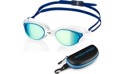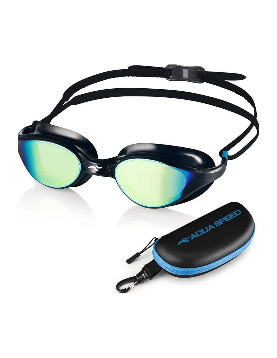 These ultra-modern Vortex Mirror goggles from Aqua Speed are a top of the range product designed for frequent pool users who value great style, highest quality and perfect fit. Vortex Mirror feature metallized, UV-protected, impact resistant polycarbonate lenses, providing a panoramic view and glare reduction. Their optical grade lens design combined with Anti-Fog coating gives the user a clear field of vision to the front and sides. Another great feature of goggles is the comfortable, soft, one-piece TPE gasket made using ultraFUSE technology, with a quickFIT rear buckle. All this makes Vortex Mirror goggles stylish, durable and easy to adjust for a leak-free fit. Features: Metalized optical grade polycarbonate lenses UV and Anti-Fog protection QuickFit ultra-fast rear buckle Soft one-piece TPE gasket made using ultraFUSE technology Exchangeable, split head strap Hard, EVA goggle case provided with those goggles ensures safe storage. Zip closing, ventilation holes and impact resistant material will protect your goggles from damage. Soft inside ensures goggles are not going to get scratched.
