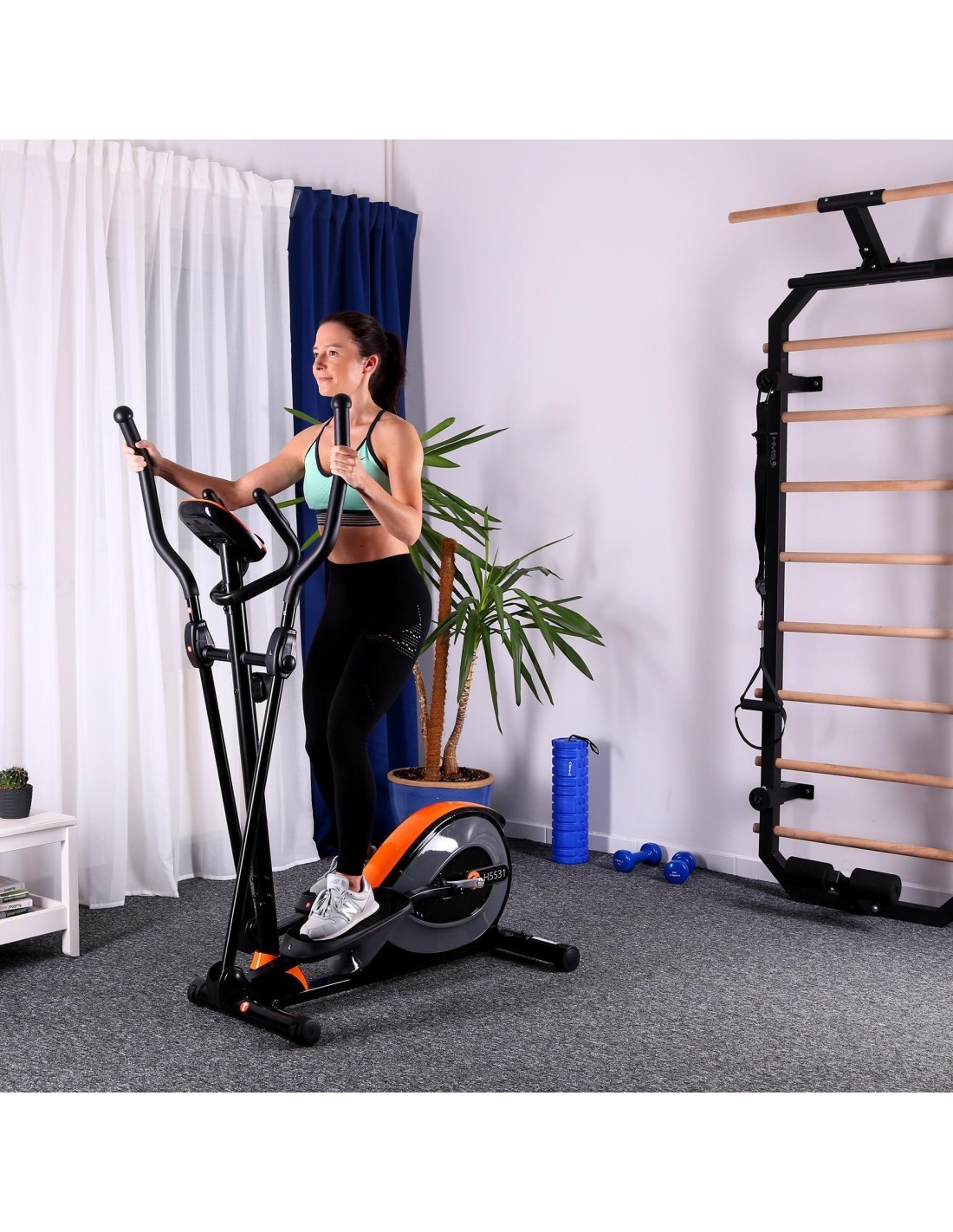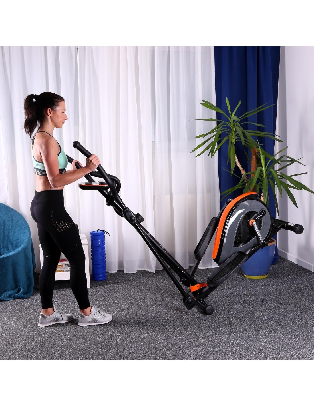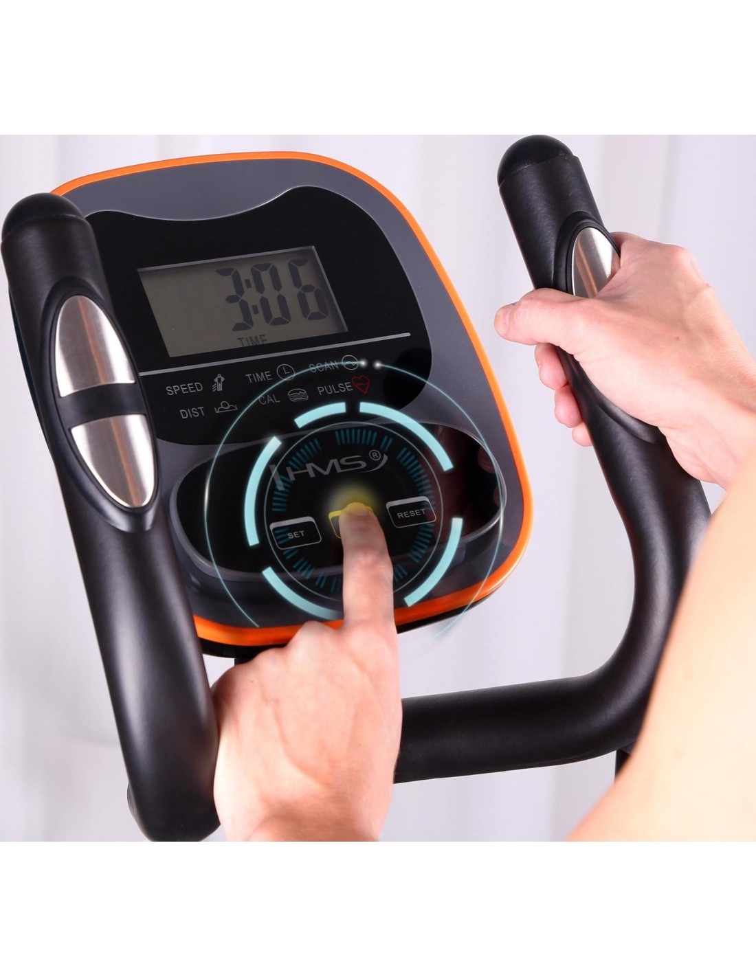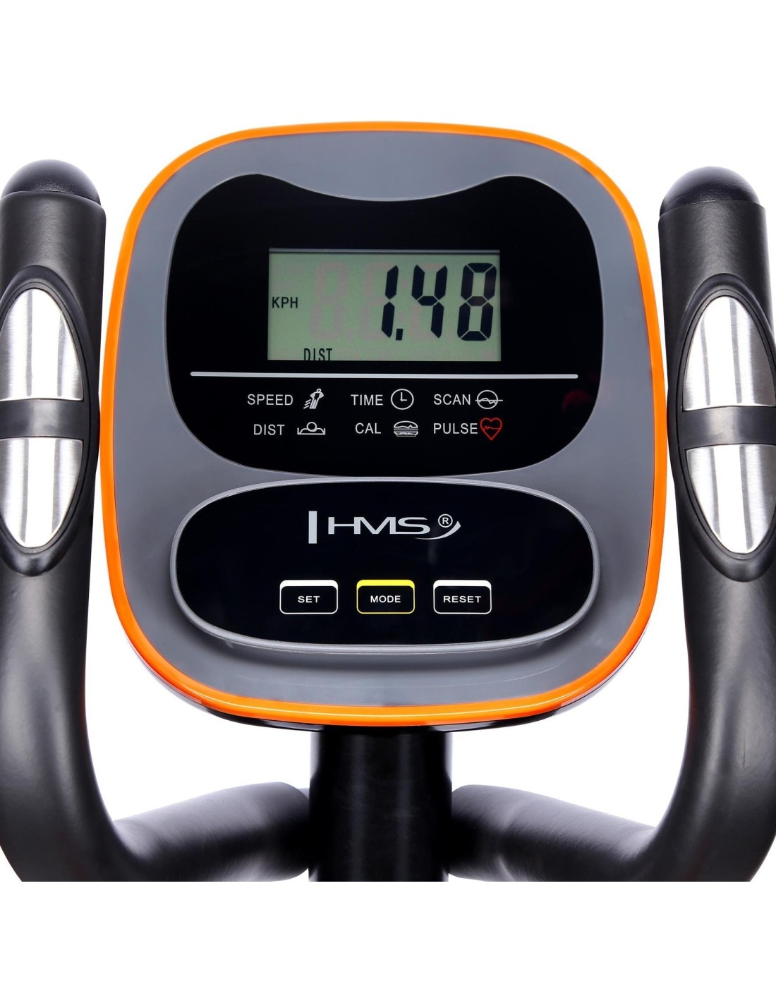 H5531-i MAGNETIC ELLIPTICAL TRAINER HMS Looking for an effective and comfortable way to improve your fitness, burn calories and strengthen your muscles? The H5531i elliptical trainer by HMS is the perfect solution for you. This modern and functional piece of equipment will allow you to perform exercises at different levels of intensity, tailored to your fitness level and training goals. Adjustable resistance With the H5531i, you can set your own resistance level to suit your preferences and abilities. The trainer has 8 resistance levels, which you adjust manually using the dial. The higher the resistance level, the greater the effort and the better the training effect. Thanks to the magnetic system, the trainer ensures smooth and quiet operation and minimises wear and tear on the mechanical parts. Intelligent computer Track your progress and control the effectiveness of your exercise with the built-in computer, which displays data such as time, distance, speed, pulse and calories on a convenient and easy-to-read LCD panel. The trainer has touch sensors on the handlebars that allow you to monitor your heart rate and adjust the intensity of your workout according to your condition. Kinomap app The H5531i elliptical trainer is compatible with the Kinomap app, which allows you to enjoy an interactive and motivating workout. The Kinomap app offers you access to thousands of cycling routes from around the world, which you can view on your device screen. The app is available for Android and iOS, as well as for smart TVs and computers. How do I connect to the Kinomap app? Download the app to your device. Then, under 'Devices', select 'Equipment management'. Select the type of machine you are using (in this case a trainer). Then search for the FTMS brand and use the bluetooth function to find your equipment (the trainer must be in use at the time). Once you have found the equipment, give it a name and enter the HMS brand. Finally, save and confirm by clicking "add new equipment". Easy transport and non-slip feet You can easily move and store the trainer thanks to special wheels that make it easy to move. The unit also has compact dimensions and a standard weight, so it doesn't take up much space. The non-slip feet will provide you with maximum safety. Thanks to its attractive design, the orbiter will become a decoration of your room. The H5531i elliptical trainer from HMS is equipment that will meet the expectations of anyone who wants to improve their fitness and health at home. The trainer is easy to use, safe and durable. Specification: Type of resistance: magnetic, internal Type of resistance adjustment: manual Number of resistance adjustment levels: 8 Flywheel weight: 7 kg Step length: 330 mm Computer: time: yes distance: yes speed: yes pulse: yes calories: yes scan: yes Display dimensions (mm): 80 x 42 Bluetooth: yes Pulse measurement: yes Touch sensor: yes Telemetry belt: no Mobile phone holder: yes Transport wheels: yes Application: yes (Kinomap) Maximum user weight: 110 kg Trainer dimensions: Length: 122 cm Width: 57 cm Height: 159 cm Power supply: 2x AA Product weight: 34.5 kg Remarks: Not for commercial use 24 months warranty