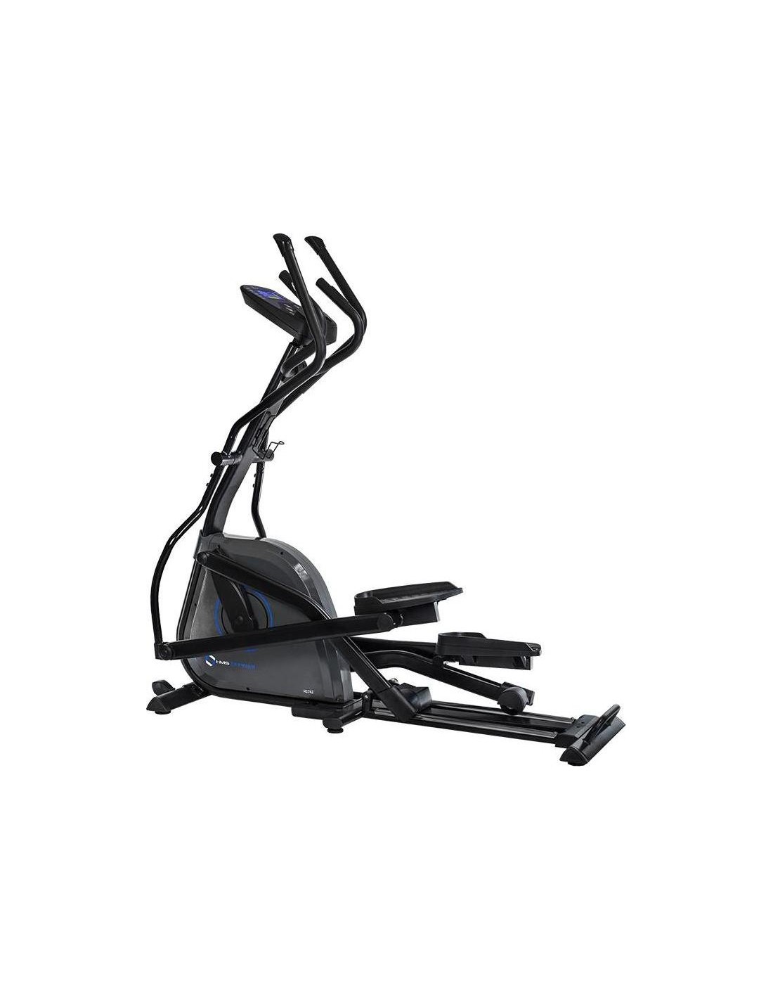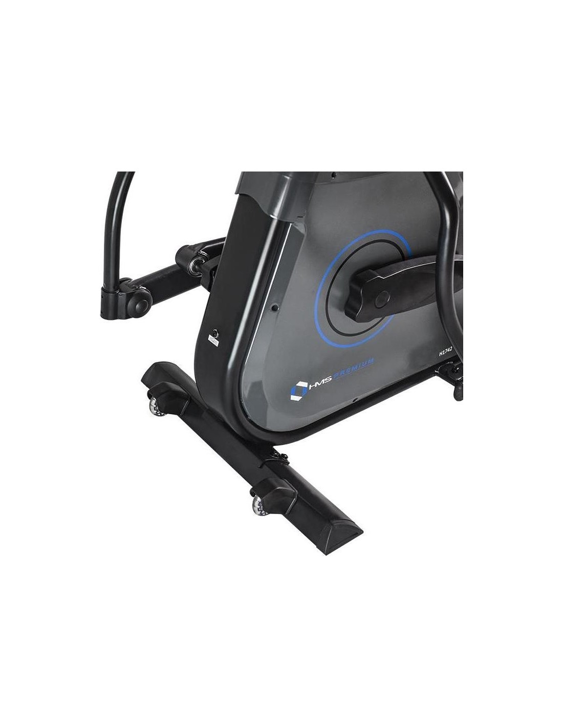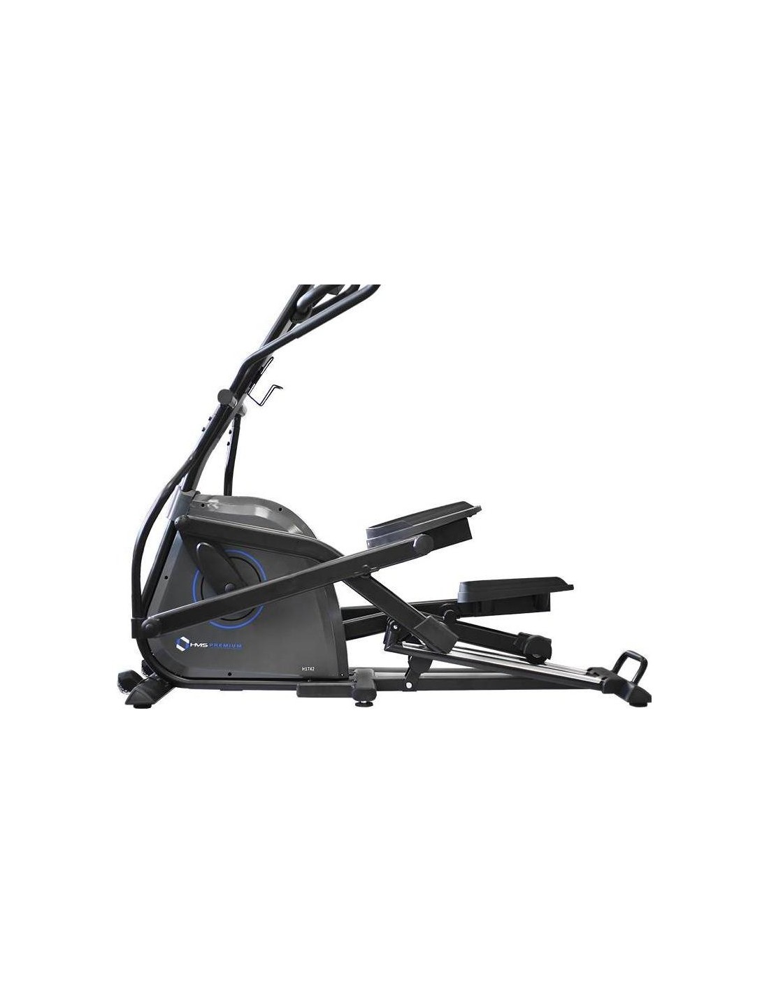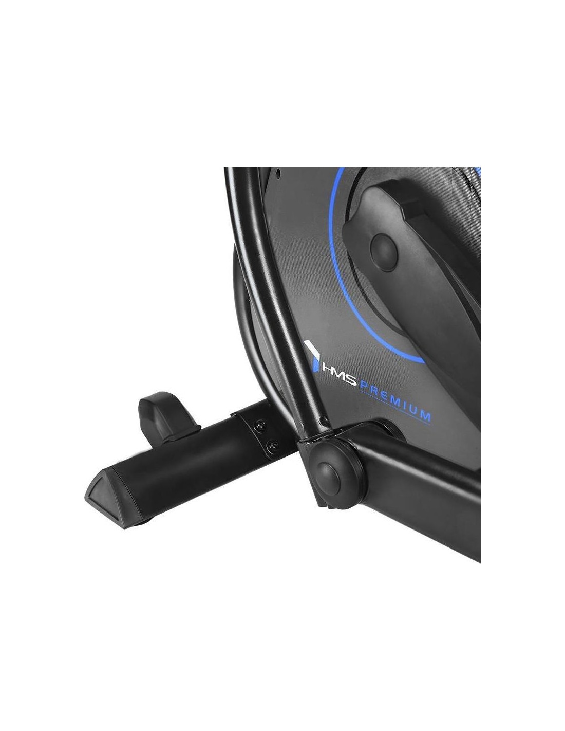 H1742 HMS PREMIUM - magnetyczny trenażer eliptyczny z generatorem. Trenażer eliptyczny firmy HMS PREMIUM wyposażony jest w głośniki i wentylator. Posiada również własny generator prądu, dzięki czemu z maszyny możemy korzystać bez podłączenia do zewnętrznego zasilania - wprawiamy ją w ruch siłą naszych mięśni. Maszyna eliptyczna H1742 HMS PREMIUM wyposażona jest w wewnętrzny magnetyczny system hamowania. W praktyce oznacza to, że za zatrzymanie koła odpowiedzialne są magnesy. Wbudowany komputer pozwala nam kontrolować obciążenie - silnik przesuwa ramię z magnesami bliżej lub dalej od koła zamachowego, aby zmniejszyć lub zwiększyć obciążenie maszyny. Użytkownik może również polegać na dużym komputerze, pomagającym mu w ustawieniu wszystkich parametrów podczas treningu, takich jak czas treningu, cel czy obciążenie. Maszyna oferuje 12 wbudowanych programów treningowych oraz tryb manualny. Kolejną funkcją trenażera eliptycznego H1742 PREMIUM jest pomiar tkanki tłuszczowej - Body Fat, oraz weryfikacja wydolności organizmu - Recovery. Komputer w H1742 PREMNIUM oferuje możliwość regulacji wysokości i położenia, co przekłada się na komfort użytkowania. Dodatkowo, możliwa jest również regulacja nachylenia stopni. Aż 5 poziomów sprawia, że użytkownik może dostosować stopień trudności do swojego treningu. Trenażer eliptyczny wyposażony jest również w sensory dotykowe, gniazdo mini Jack, port USB oraz uchwyt na butelkę z wodą. Maszyna eliptyczna H1742 PREMIUM jest urządzeniem klasy Semi Commercial.