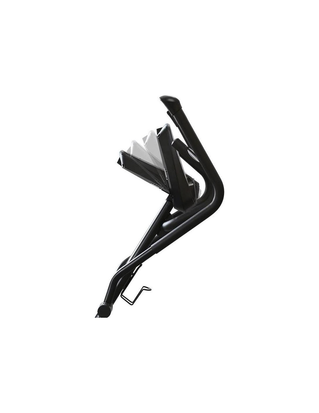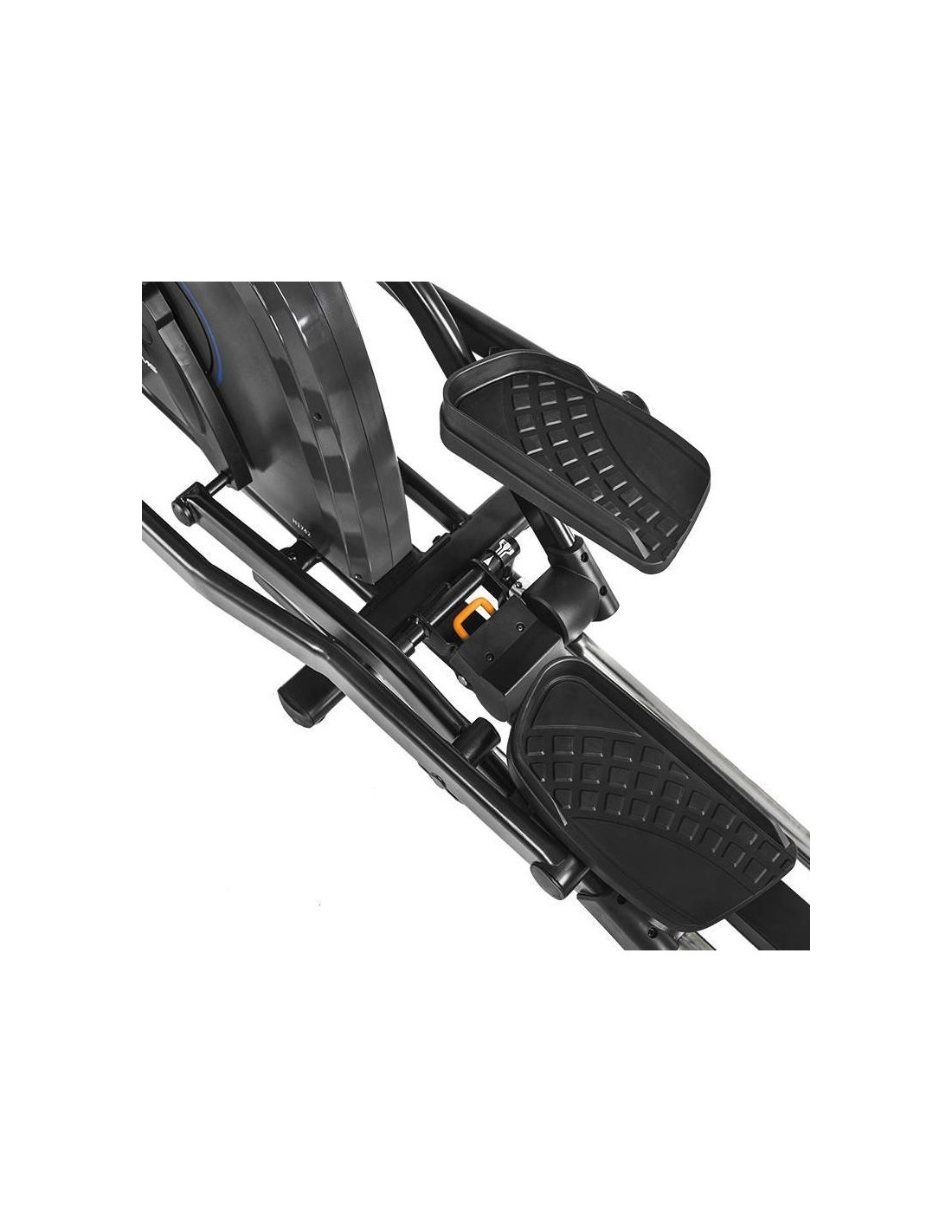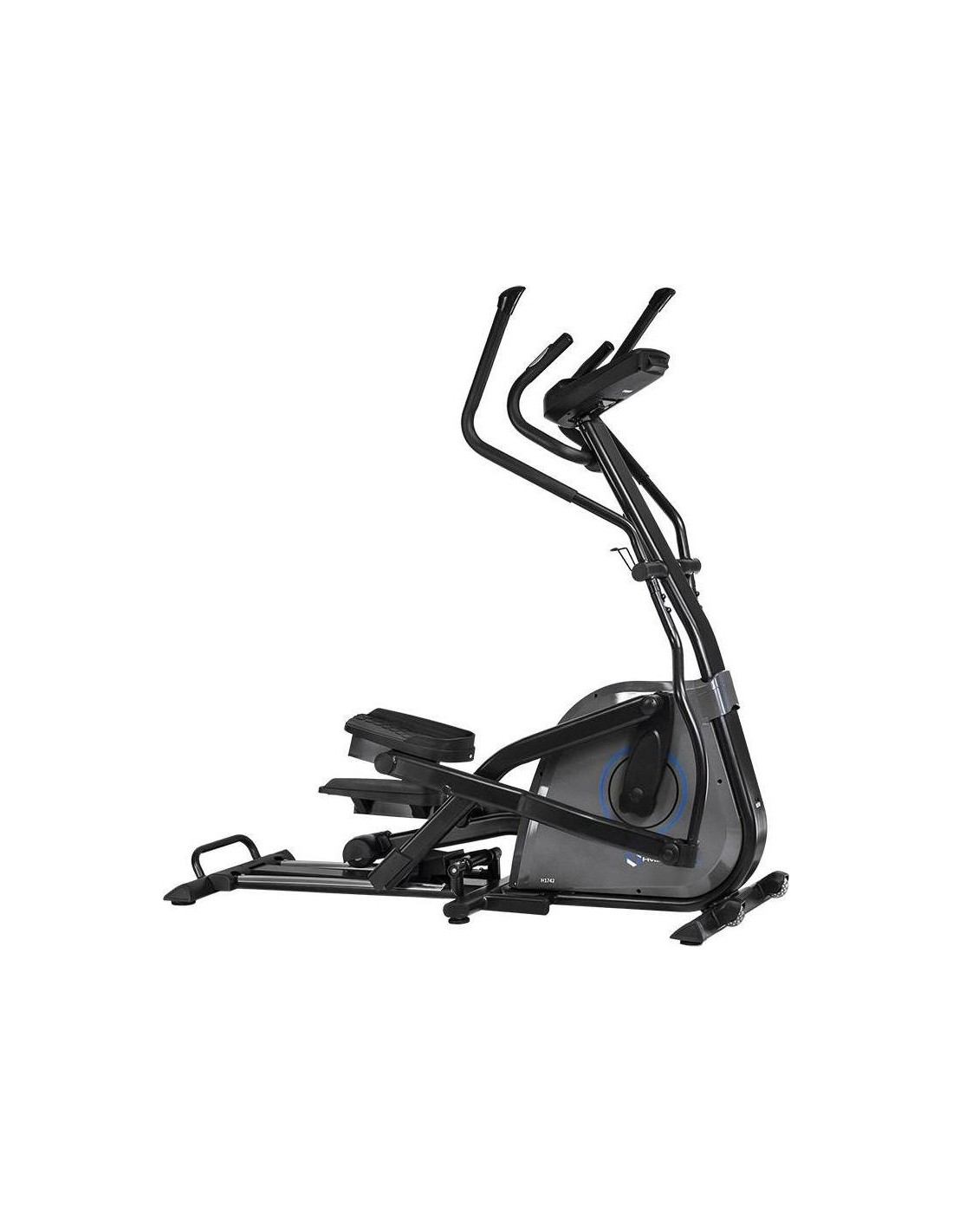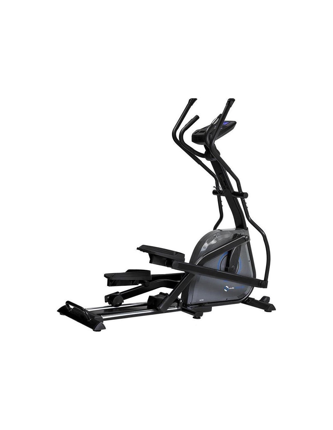 H1742 HMS PREMIUM - magnetyczny trenażer eliptyczny z generatorem. Trenażer eliptyczny firmy HMS PREMIUM wyposażony jest w głośniki i wentylator. Posiada również własny generator prądu, dzięki czemu z maszyny możemy korzystać bez podłączenia do zewnętrznego zasilania - wprawiamy ją w ruch siłą naszych mięśni. Maszyna eliptyczna H1742 HMS PREMIUM wyposażona jest w wewnętrzny magnetyczny system hamowania. W praktyce oznacza to, że za zatrzymanie koła odpowiedzialne są magnesy. Wbudowany komputer pozwala nam kontrolować obciążenie - silnik przesuwa ramię z magnesami bliżej lub dalej od koła zamachowego, aby zmniejszyć lub zwiększyć obciążenie maszyny. Użytkownik może również polegać na dużym komputerze, pomagającym mu w ustawieniu wszystkich parametrów podczas treningu, takich jak czas treningu, cel czy obciążenie. Maszyna oferuje 12 wbudowanych programów treningowych oraz tryb manualny. Kolejną funkcją trenażera eliptycznego H1742 PREMIUM jest pomiar tkanki tłuszczowej - Body Fat, oraz weryfikacja wydolności organizmu - Recovery. Komputer w H1742 PREMNIUM oferuje możliwość regulacji wysokości i położenia, co przekłada się na komfort użytkowania. Dodatkowo, możliwa jest również regulacja nachylenia stopni. Aż 5 poziomów sprawia, że użytkownik może dostosować stopień trudności do swojego treningu. Trenażer eliptyczny wyposażony jest również w sensory dotykowe, gniazdo mini Jack, port USB oraz uchwyt na butelkę z wodą. Maszyna eliptyczna H1742 PREMIUM jest urządzeniem klasy Semi Commercial.