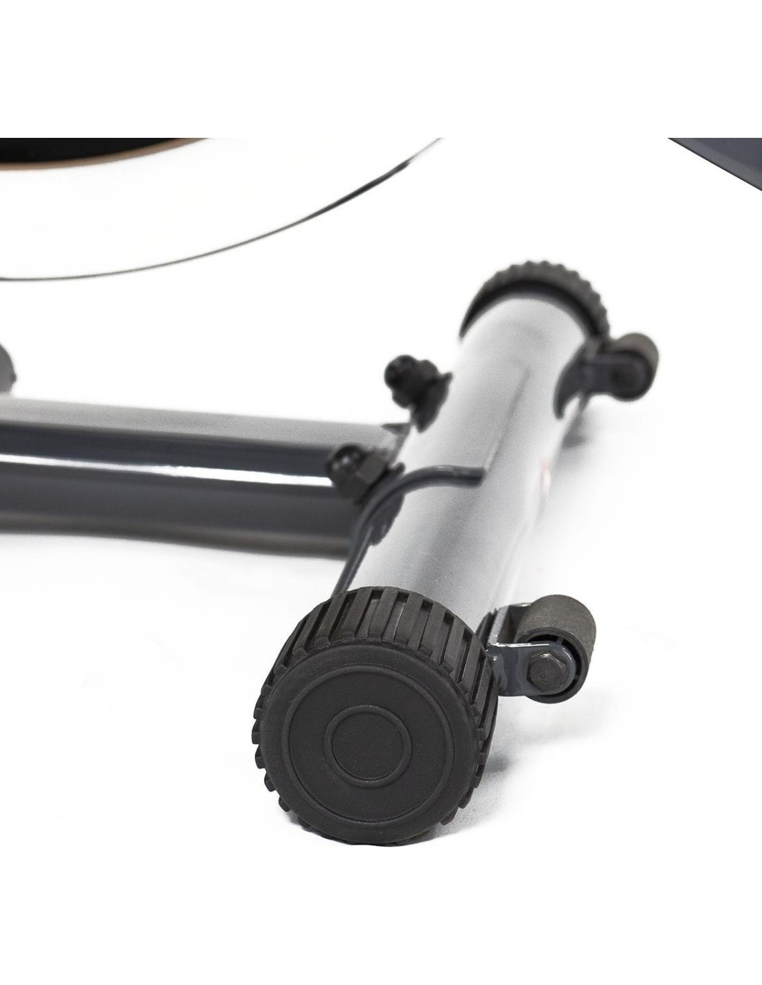Ćwiczenia są bardzo ciche , więc nie przeszkadzają innym osobom w Twoim otoczeniu. Na wyświetlaczu komputera prezentowane są najważniejsze dane dotyczące prowadzonej sesji treningowej, między innymi puls, który możemy zmierzyć za pomocą sensorów dotykowych znajdujących się na rączkach. Stalowe płozy wyposażone w wygodne antypoślizgowe stopki są kolejnym atutem tej konstrukcji. Kółka transportowe zamontowane w przedniej podstawie, umożliwią łatwe przestawianie sprzętu. Poręcze, z regulacją wysokości, zostały pokryte miękką, ergonomiczną gąbką dla jeszcze większego komfortu treningu.