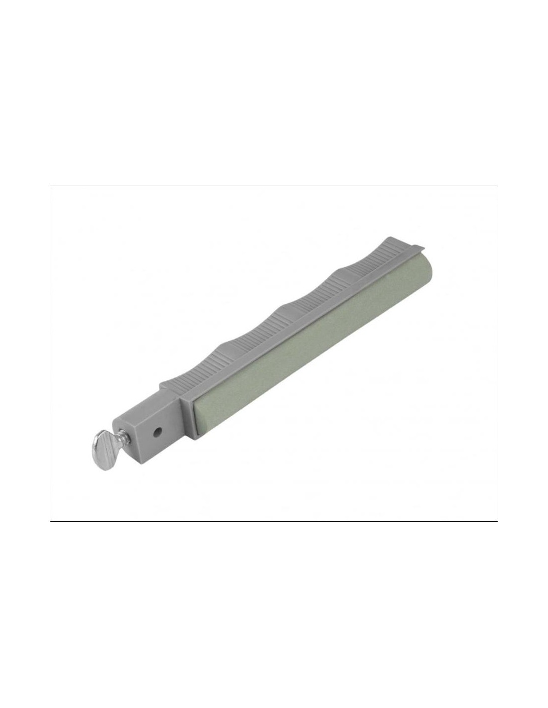 Kamienie osadzone są w polimerowej obudowie o ergonomicznym kształcie, wyposażonej w mosiężną wkładkę gwintowaną do prowadnicy (nie dołączona do zestawu).