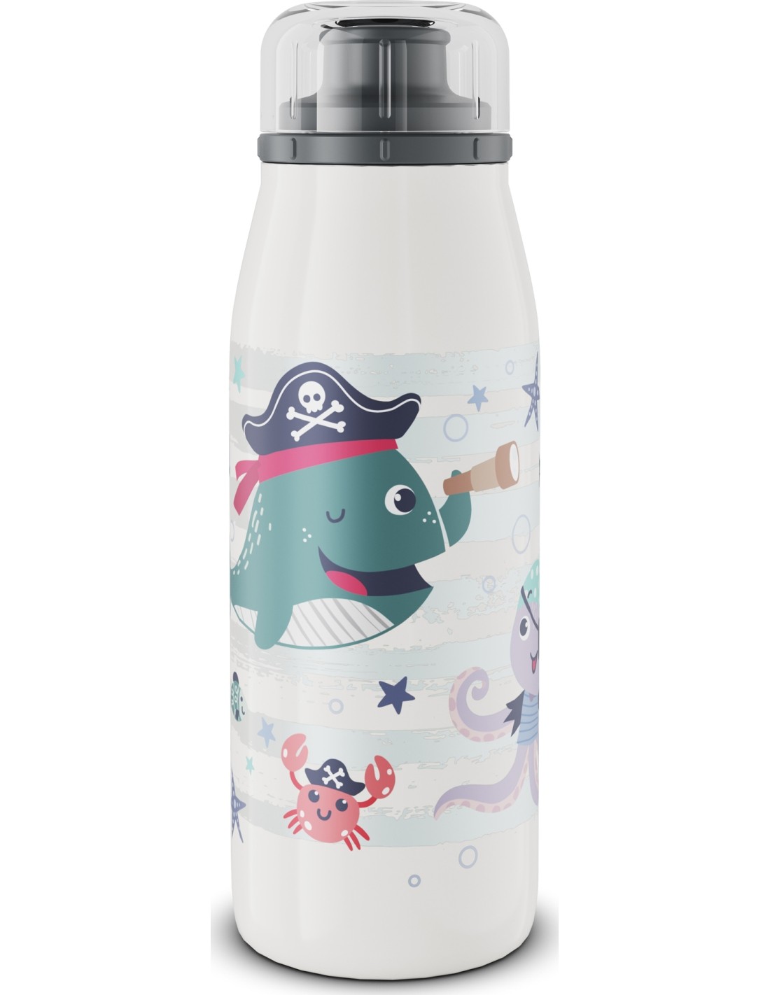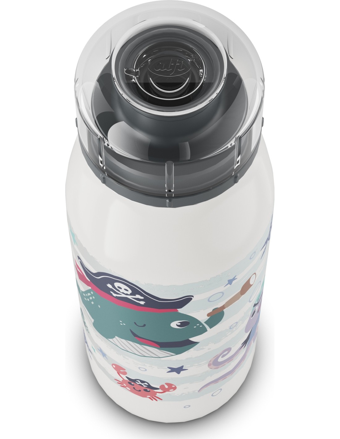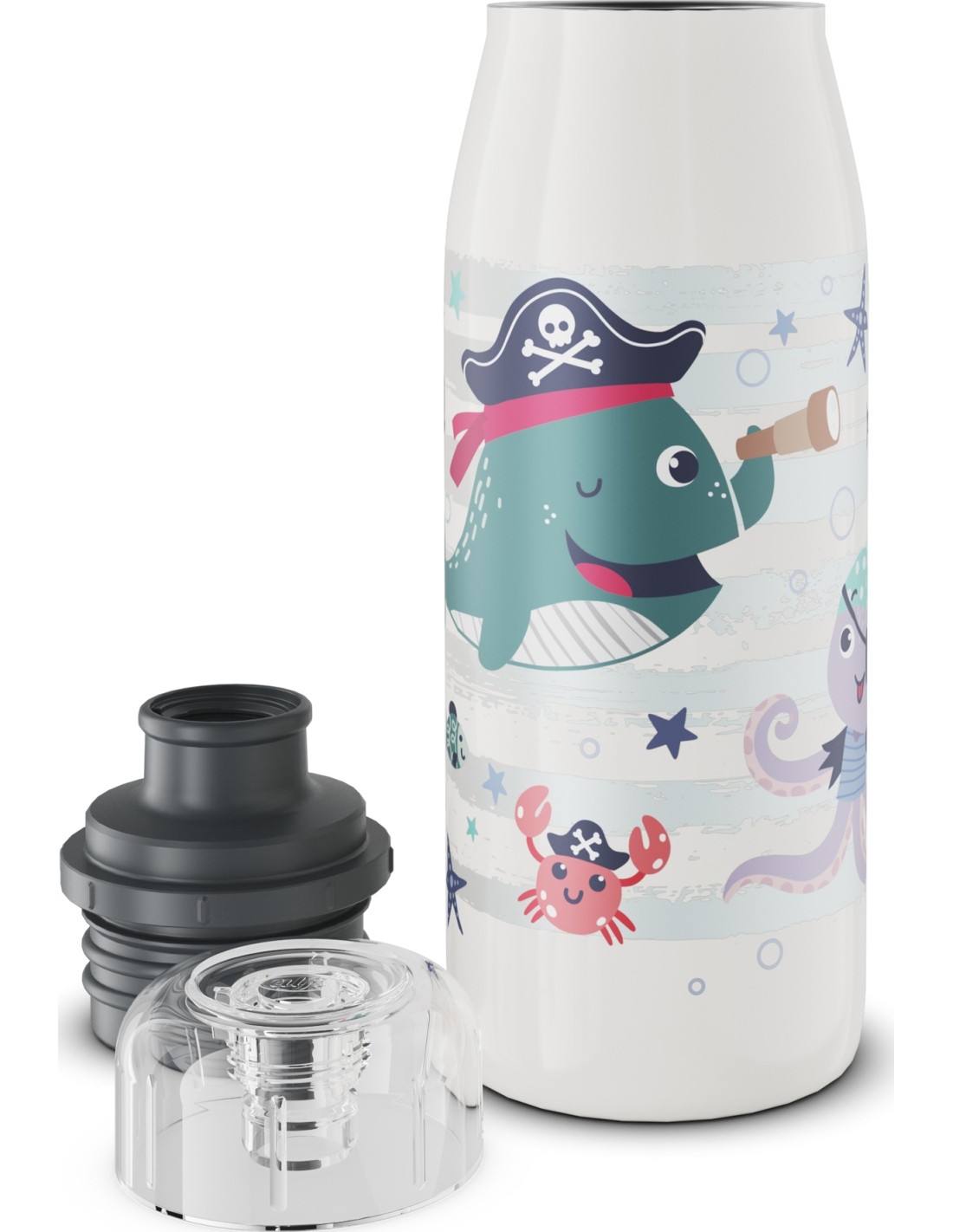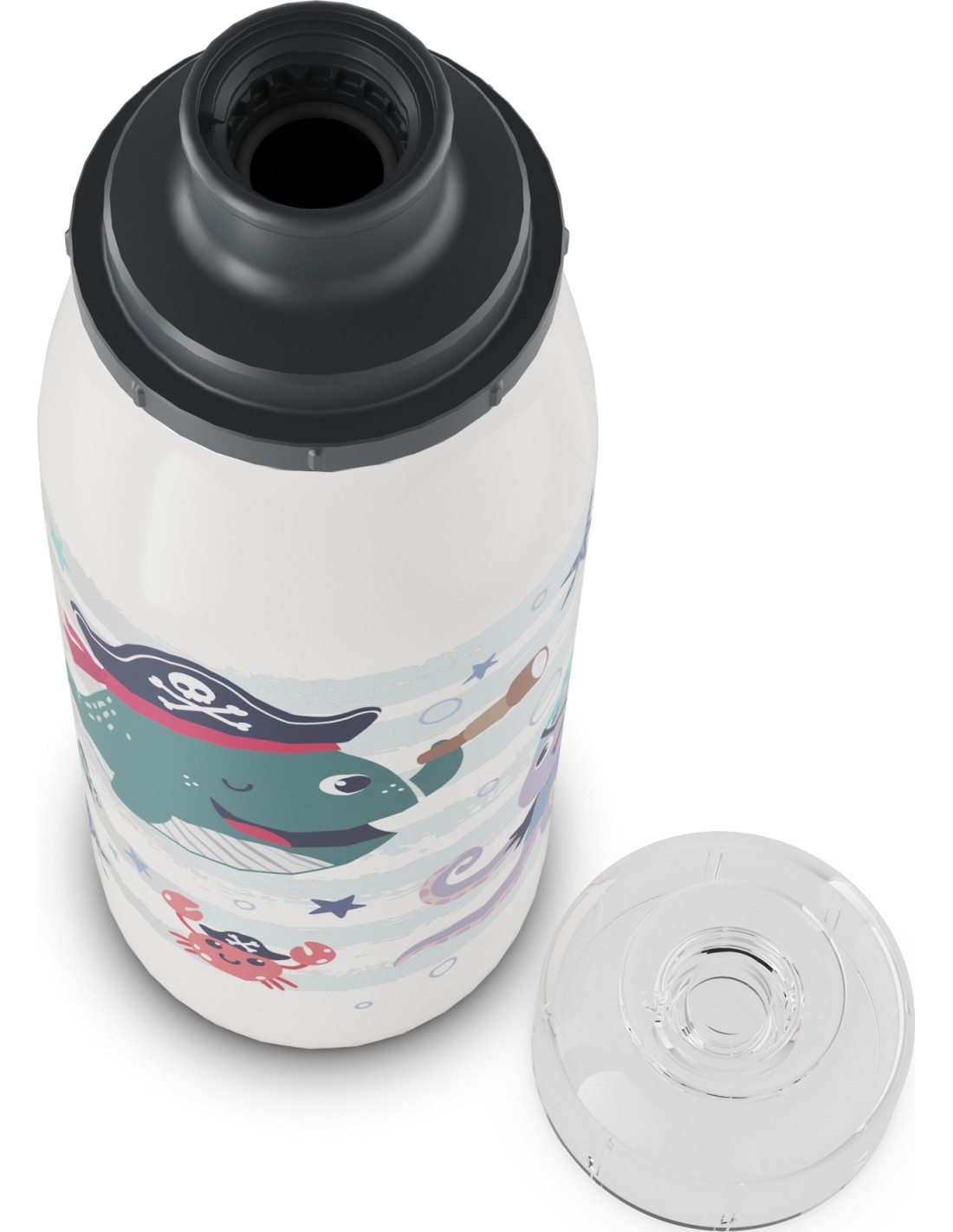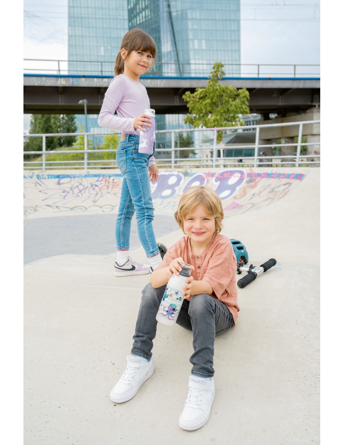 A solid drinking bottle made of stainless steel with a sealed drinking cap which is protected against dirt with a small cap. The bottle is suitable for fruit acid and carbonic acid. The modern design is made by Christian Rummel & Tim Storti. The upper part the bottle is equipped with handy silicone. Dishwasher-safe, without inner coating. Made in Germany.+ dishwasher safe