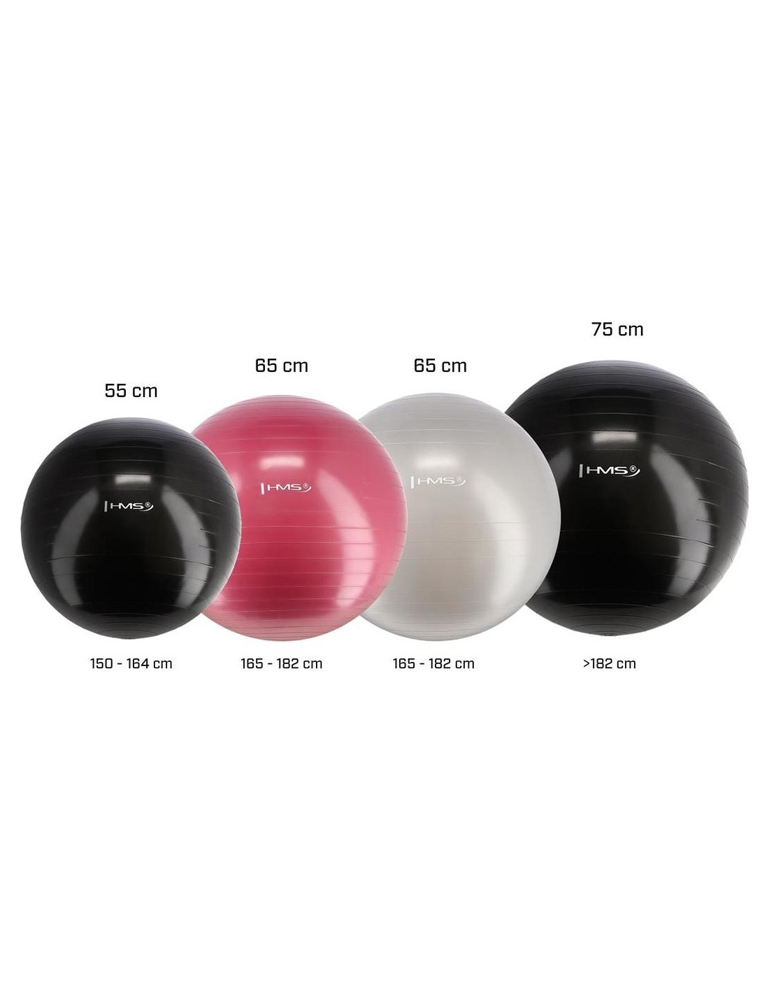 Gymnastic ball 55cm 65cm 75cm YB01N HMS is made of synthetic material with non-slip surface. Our ball is a fitness equipment with an extremely wide use possibilities. It can be used both in the fitness workout, as well as for rehabilitation. Exercises with gymnastic balls are so highly effective thanks to the unstable base, that in addition to the chosen to be trained muscles, activates postural muscles (stomach, back, side muscles, buttocks) to keep the body and the ball in the desired position. This means that during normal training session, we train not only a specific muscle group, but we also improve the sense of balance and correct postural defects. It is well suited for the overall physical training. Ball intended for many kinds of training: movement exercises strengthening exercises stretching correction exercises pilates yoga rehabilitation Specification: Color: black Ball diameter: 75 cm Made of top quality rubber The pump included Maximum load: 100 kg Thanks to a special structure of the ball, body does not slip over the surface Ball diameters and user height: 55 cm: height 150-164 cm 65 cm: height 165-182 cm 75 cm: height 182 cm and more Remarks: Not for commercial use 24 months warranty