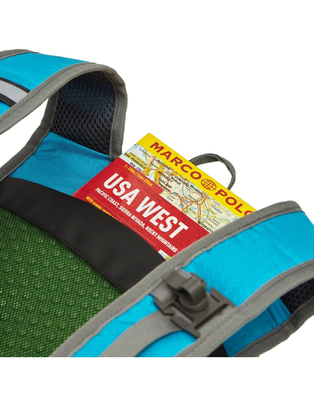 In addition to the main compartment, the Adventure model has four additional pockets. Three additional pockets at the front and a lower pocket with a net to attach to the front of the backpack, which allows you to attach a helmet or wet clothes.