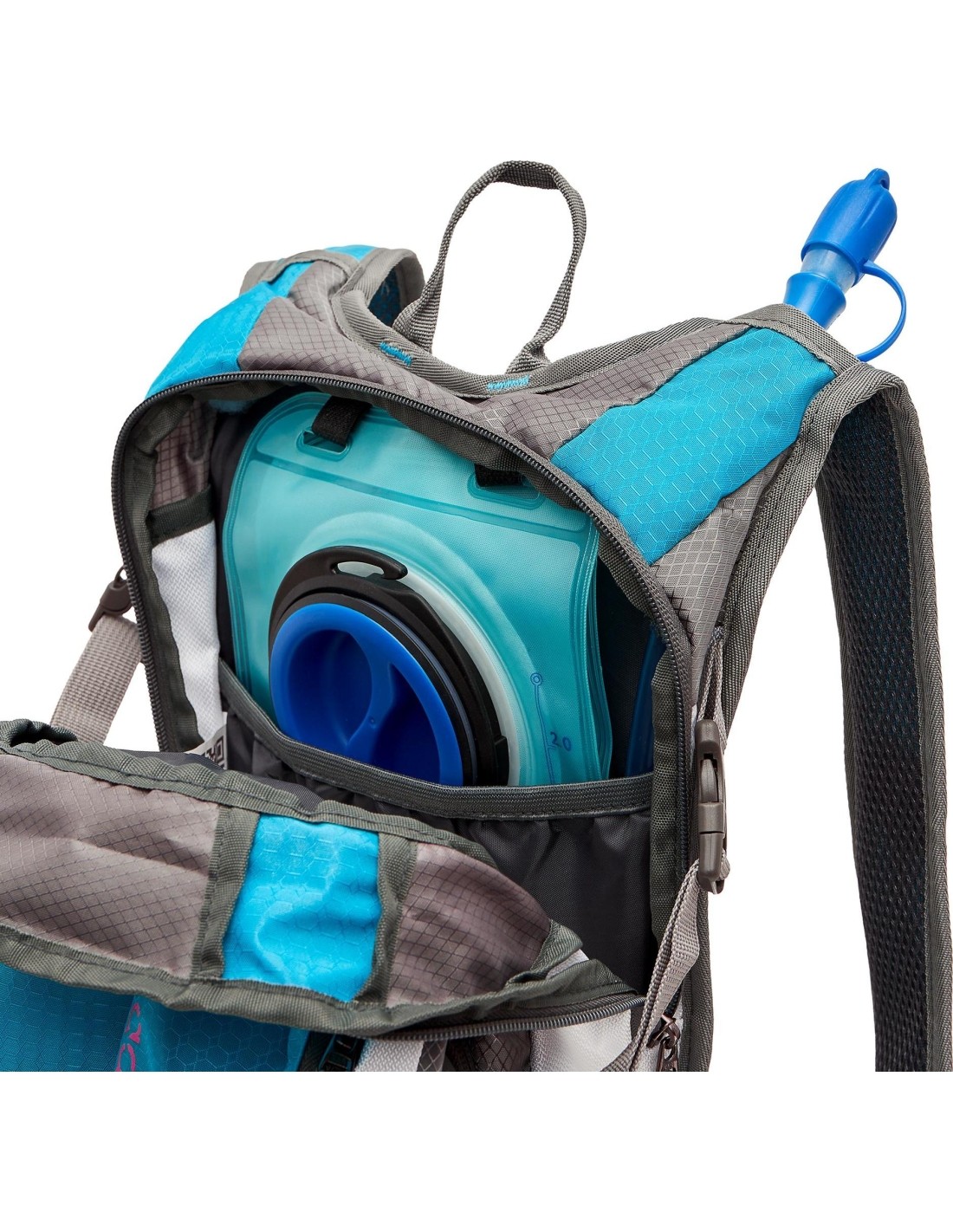 - Main compartment with a division wall for a water bladder.
