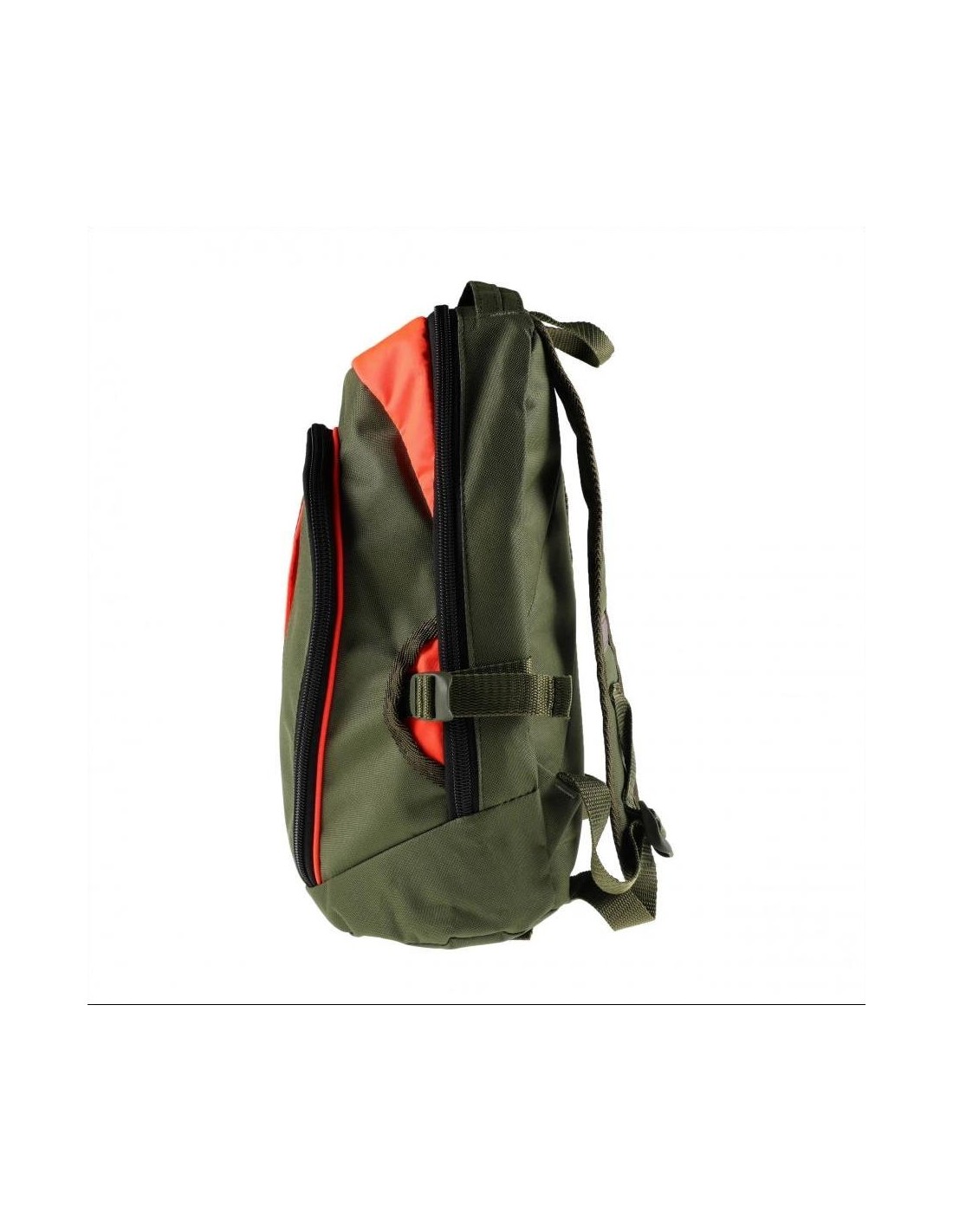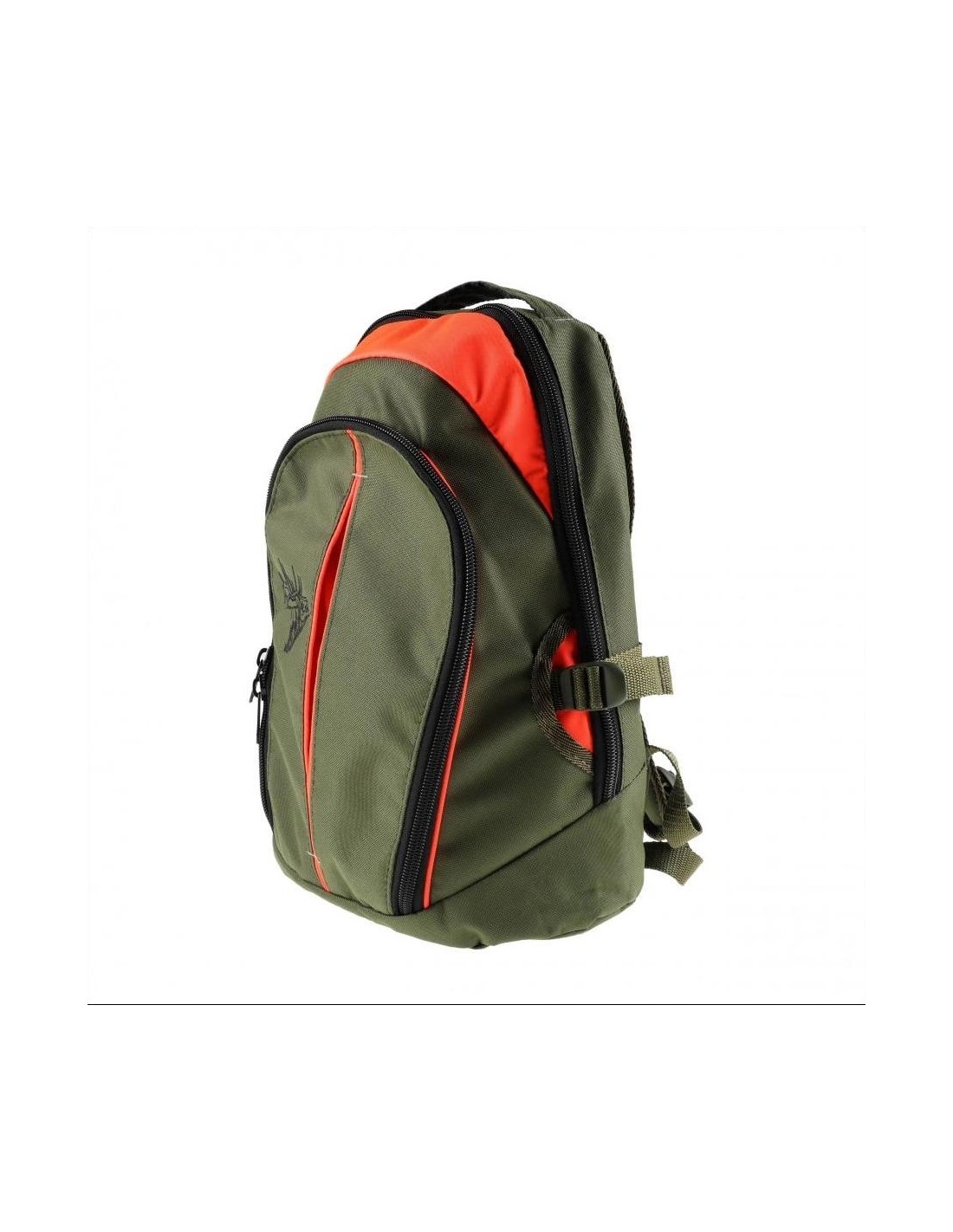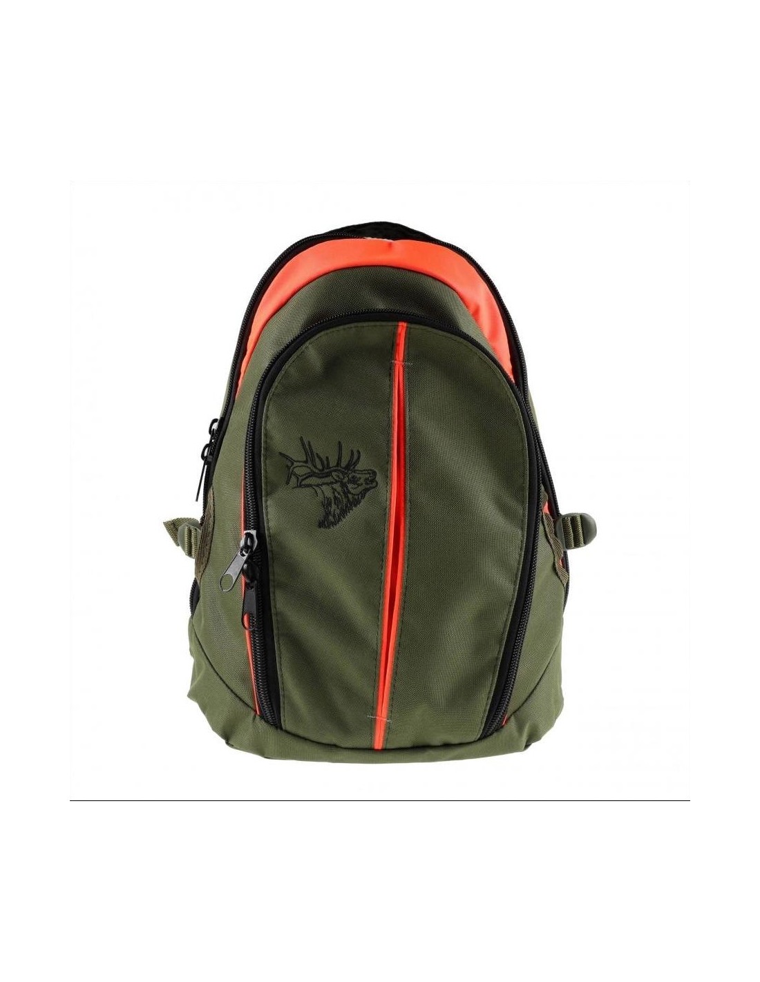 The backpack's suspenders are adjustable, you can easily adjust their length to your needs. A reflective stripe is placed on the right suspenders, making you more visible at night to your hunting companions. Your visibility is improved by bright orange inserts. The backpack has one large zippered compartment with two interior pockets. The second pocket is located in the front of the backpack. The model comes in olive-orange color.