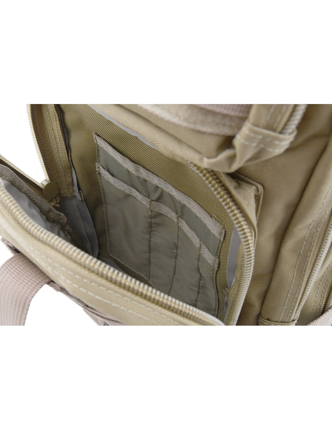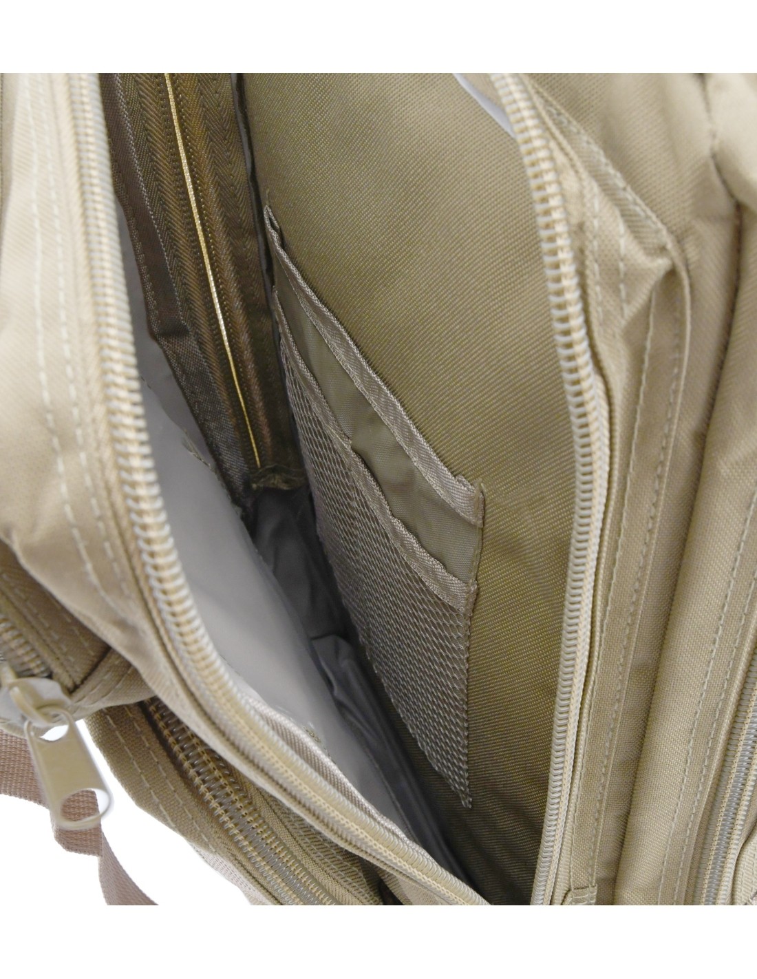 Z przodu i po bokach wyposażony jest w system Molle, który daje możliwość mocowania innego sprzętu. Kieszenie wyposażone są w solidny dwukierunkowy zamek błyskawiczny. Kieszenie wewnętrzne oraz kieszeń z siatki uzupełnione są pętlami do bezpiecznego przenoszenia drobnych przedmiotów. Jedna z wewnętrznych kieszeni wyposażona jest w klasyczny zamek błyskawiczny, natomiast tylna wentylowana kieszeń wyposażona jest w rzep.