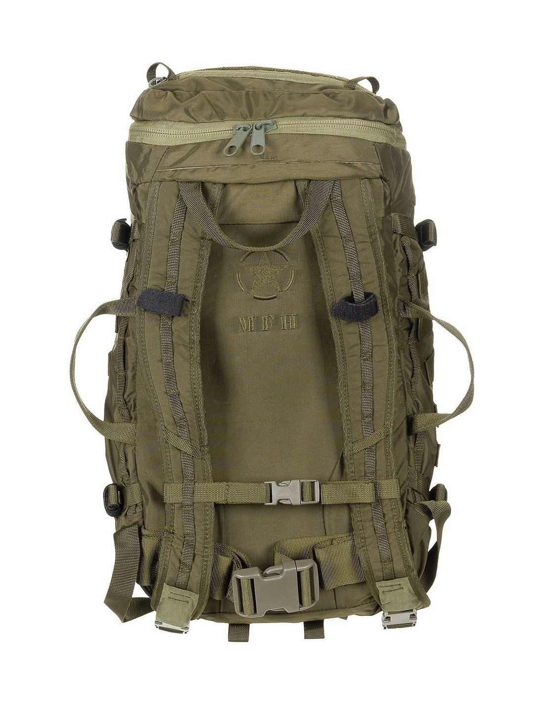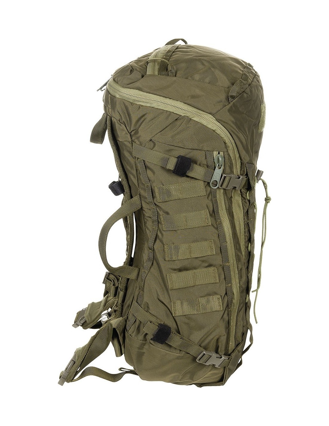 - Przód z elastycznym sznurkiem ściągającym ze stoperem i biegnącymi po bokach pętlami do mocowania Molle .