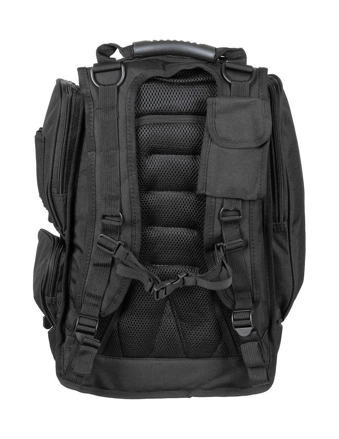 - 1 duża kieszeń z przodu z dwukierunkowym zamkiem błyskawicznym, karabinkiem, różnymi wsuwanymi kieszeniami i 2 rzepami .