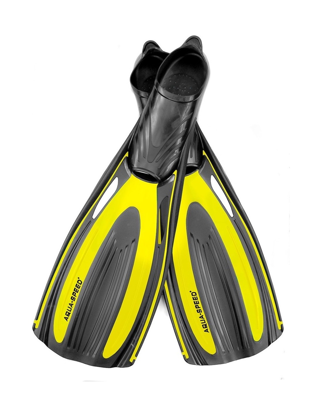 Superchannel HYDRO fins are long snorkeling fins with closed heel foot pockets and flexible channel-style blades.  These excellent fins use a combination of rigid and soft materials which allow the blade to flex, creating a U-shaped central channel that directs the flow of water along the blade, improving propulsion and efficiency. The blades also feature two traditional lateral channels to reduce leg fatigue. The blade is set at an optimal 20 degrees angle to maximise thrust.  Strong side reinforcements molded directly into the foot pockets help control the flexibility of the blade, adding spring and reducing energy-wasting vibrations.  The fin blade elastomer is precisely molded into the foot pocket to increase performance and efficiency, and help reduce muscle fatigue after prolonged use.  The closed heel foot pocket provides comfort and secure fit. A grip tab on the back of each foot pocket makes it easier to put on and take off the fin.  HYDRO fins are an ideal choice for divers or snorkellers who are looking for the perfect combination of power and efficiency.   • Three-Channel Blade • High-performance Technopolymers • Durable materials and design • Closed heel foot pockets • Reinforced sides