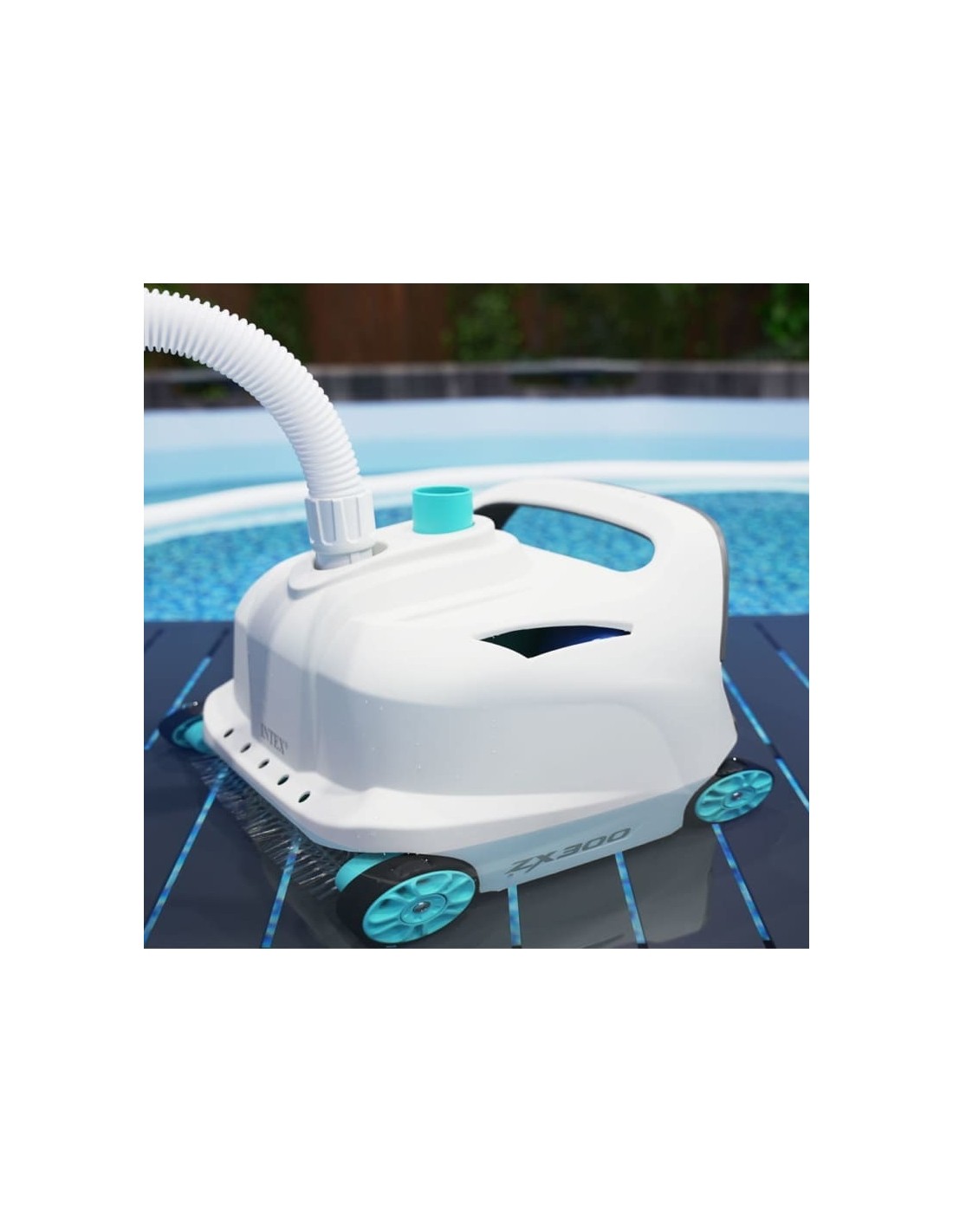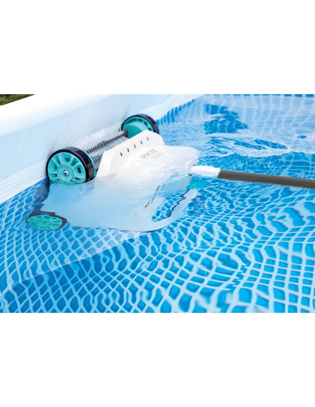 Odkurzacz, aby mógł spełniać swoją rolę wymaga basenowej pompy filtrującej o minimalnej wydajności 5678 litrów na godzinę. Obrotowe szczotki-skrubery odkurzacza usuwają najtrudniejsze zabrudzenia, a drobny filtr siatkowy (0,15 mm) wyłapuje najdrobniejsze zanieczyszczenia. Do prezentowanego urządzenia dołączony jest 6,5 m wąż, którym połączysz je z pompą.