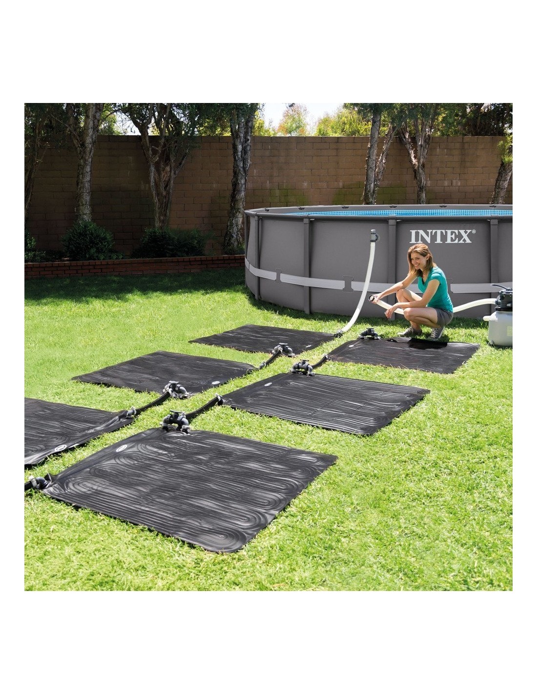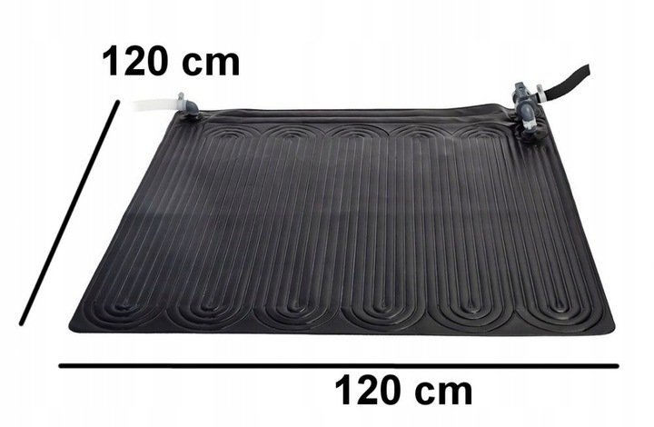 Woda przepływając przez matę o wymiarach 120 cm x 120 cm nagrzewa się w przyjazny naturze sposób. Jeśli masz bardzo duży basen Intex, możesz do niego podłączyć nawet kilka mat.Mata stworzona została zmocnego PVC.Łatwo się ją transportuje i przenosi.