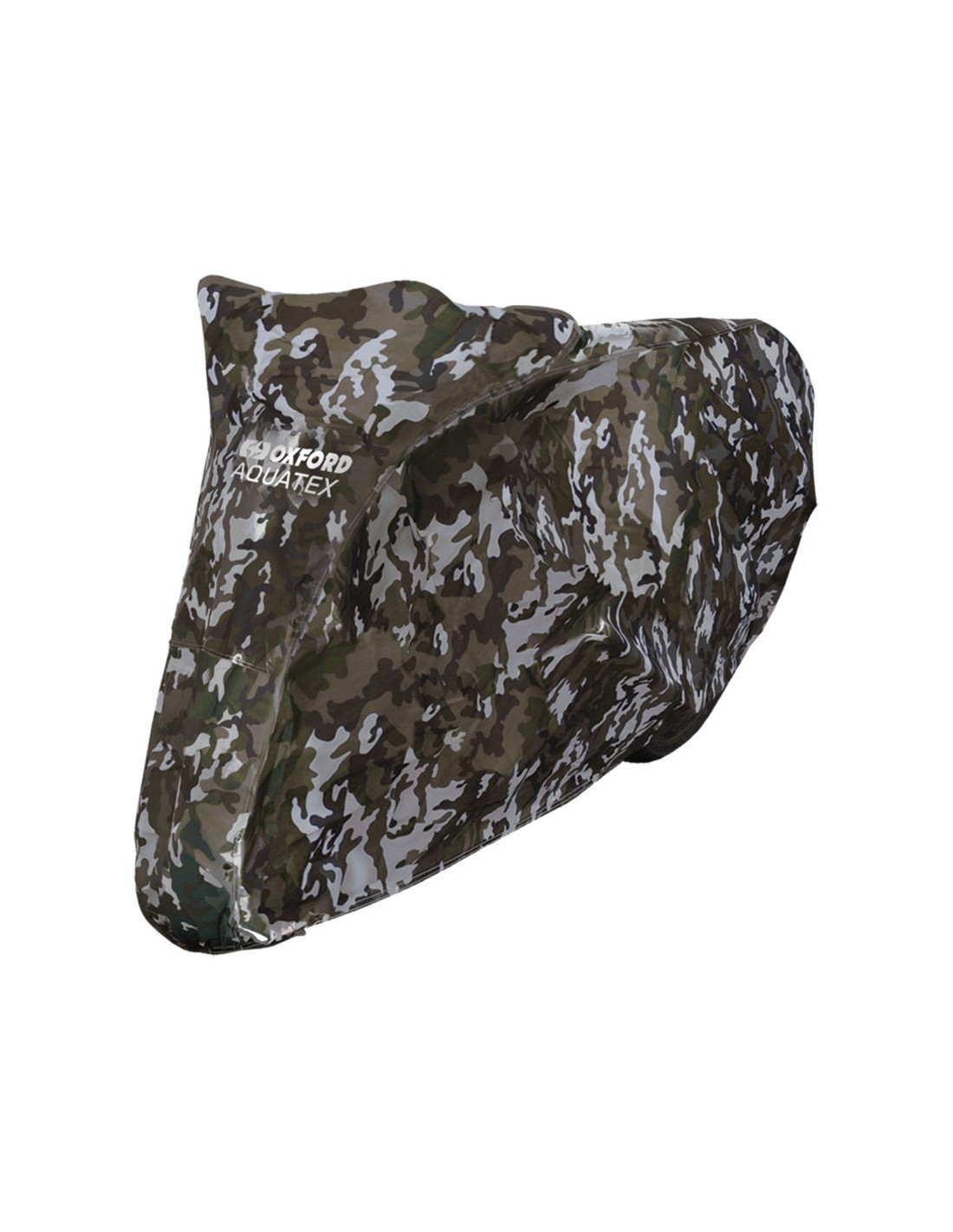 The Motorcycle Cover Oxford Aquatex Camo is the essential motorcycle cover. As you would expect from the world’s best-selling motorcycle cover it comes packed with useful features and is built to last. The camouflage graphic design blends in with the surroundings.