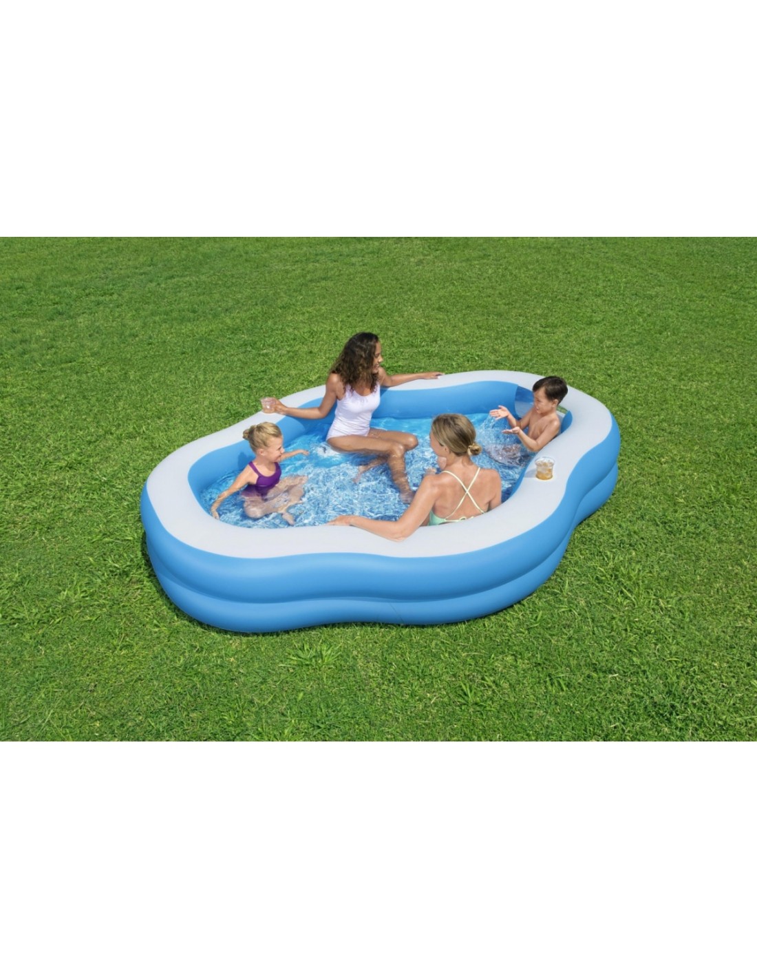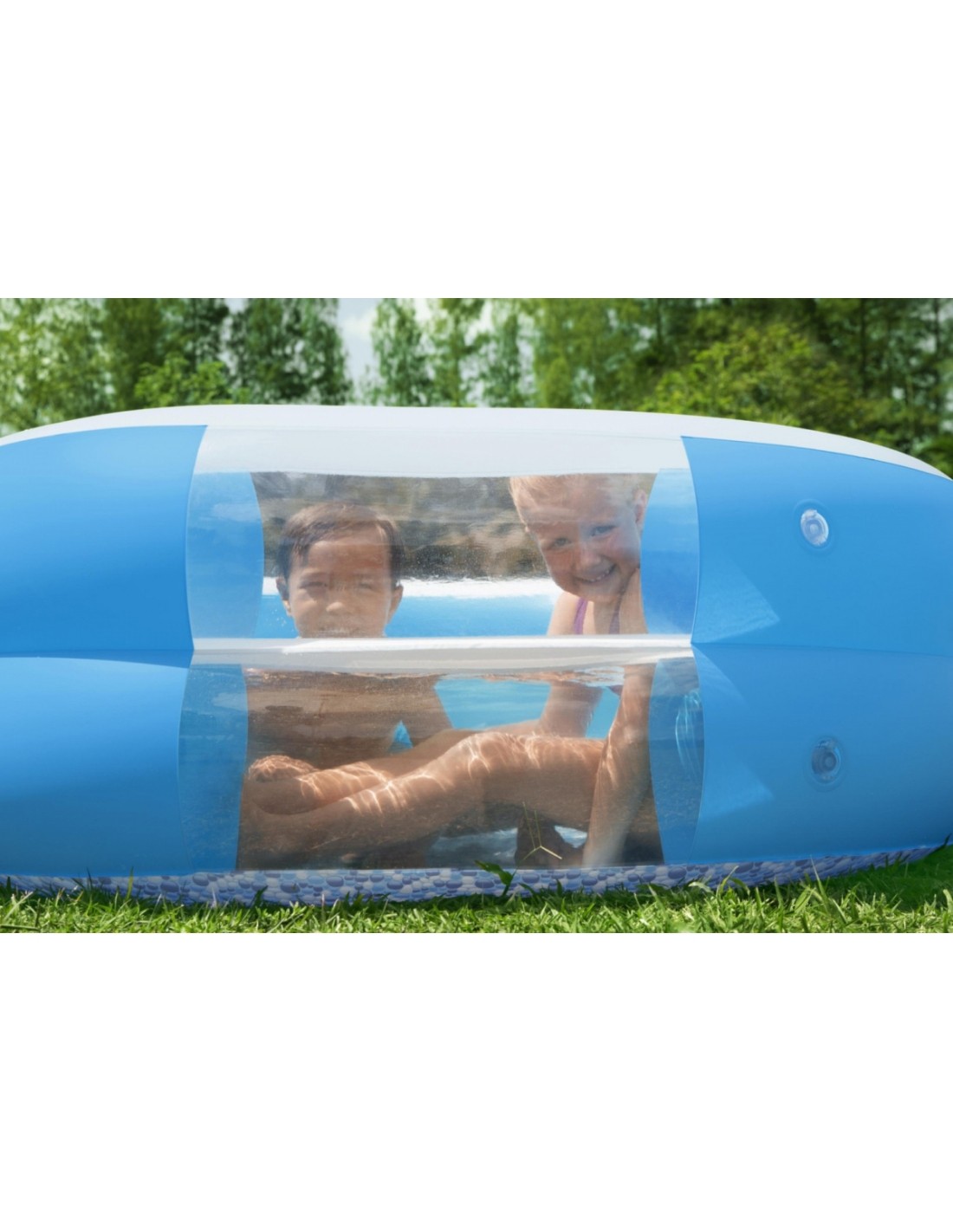 Dla rodzin, które szukają oryginalnego i funkcjonalnego basenu ogrodowego, prezentowany model od Bestway będzie idealny. Jego ciekawy kształt, zbudowany z 2 dmuchanych pierścieni w kolorach niebieskim i białym, na pewno przyciągnie uwagę wszystkich wokół. Wykonany jest z wytrzymałego materiału PVC, co gwarantuje długo i niezawodne użytkowanie.