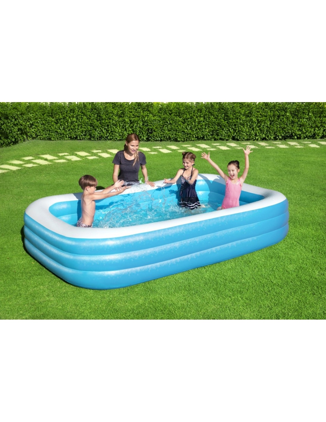 Dmuchany basen od Bestway gwarantuje najlepszy wakacyjny wypoczynek w ogrodzie dla całej rodziny. Przeznaczony jest powyżej 6-go roku życia. Basen składa się z 3 dmuchanych, ekstra szerokich pierścieni, co zapewnia stabilność i wytrzymałość konstrukcji. Materiał PVC, z którego został wykonany dmuchaniec, gwarantuje trwałość, dzięki czemu będzie on służył przez wiele sezonów.