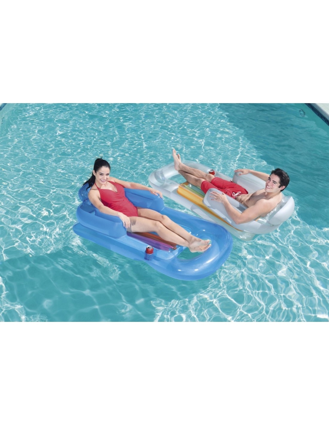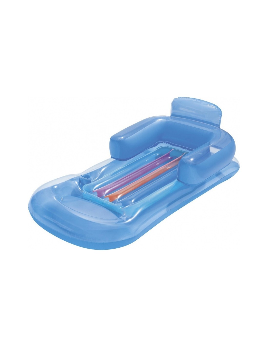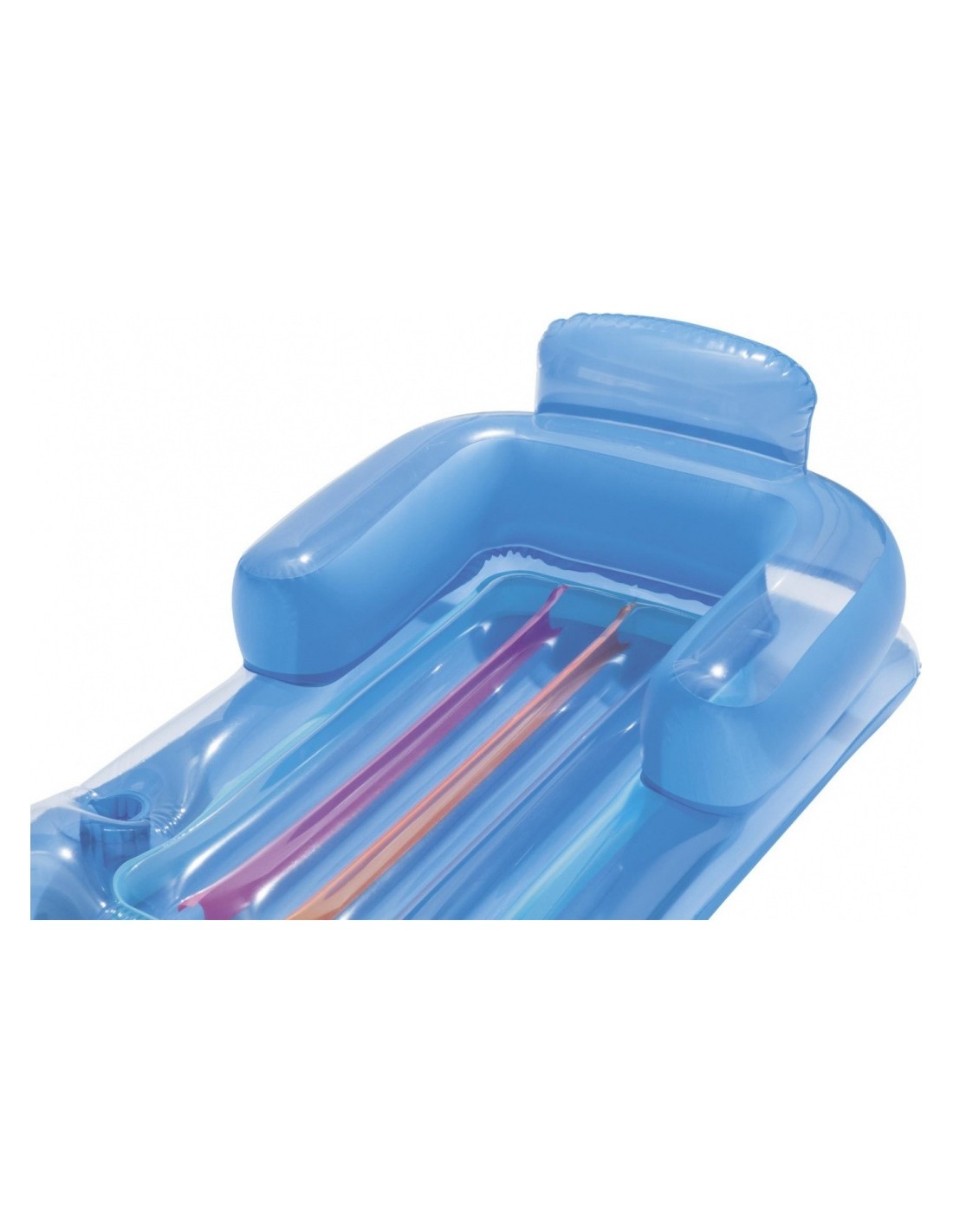 Niebywale wygodny i komfortowy fotel do pływania to propozycja renomowanej marki Bestway. Połączenie tęczowej kolorystyki z niebieskimi elementami na pewno każdemu przypadnie do gustu. Dodatkowo o komfort podczas wypoczynku zadba dmuchane oparcie i podłokietniki, dużym atutem jest uchwyt na napój, więc nie musisz już przerywać swojego relaksu. Materac został wykonany z trwałego, odpornego na drobne uszkodzenia materiału PVC.