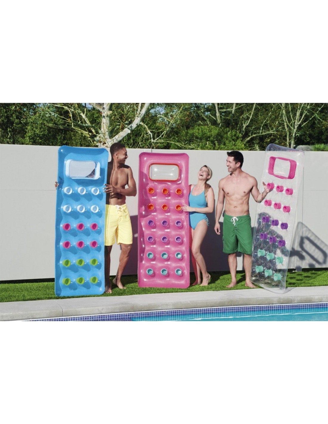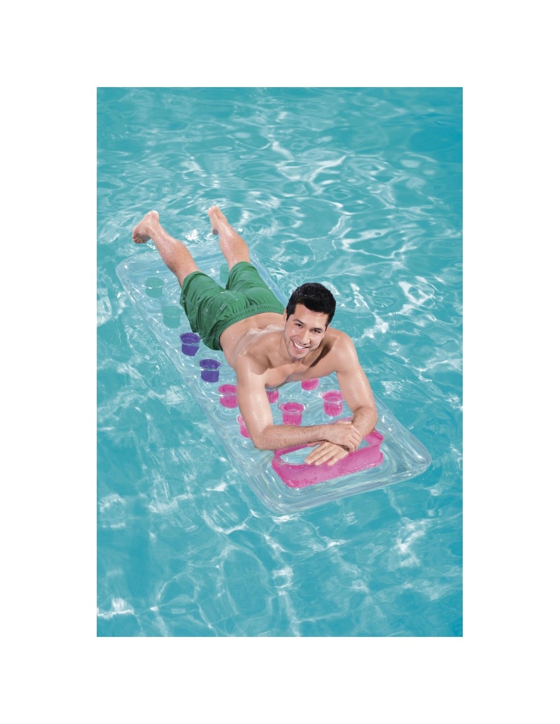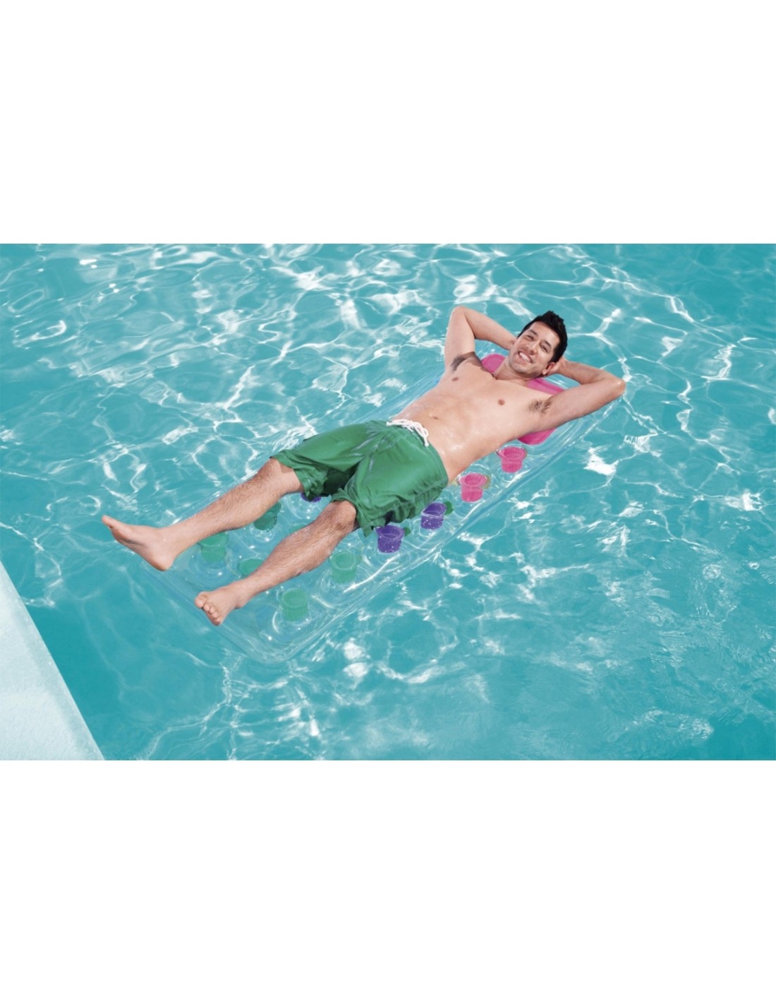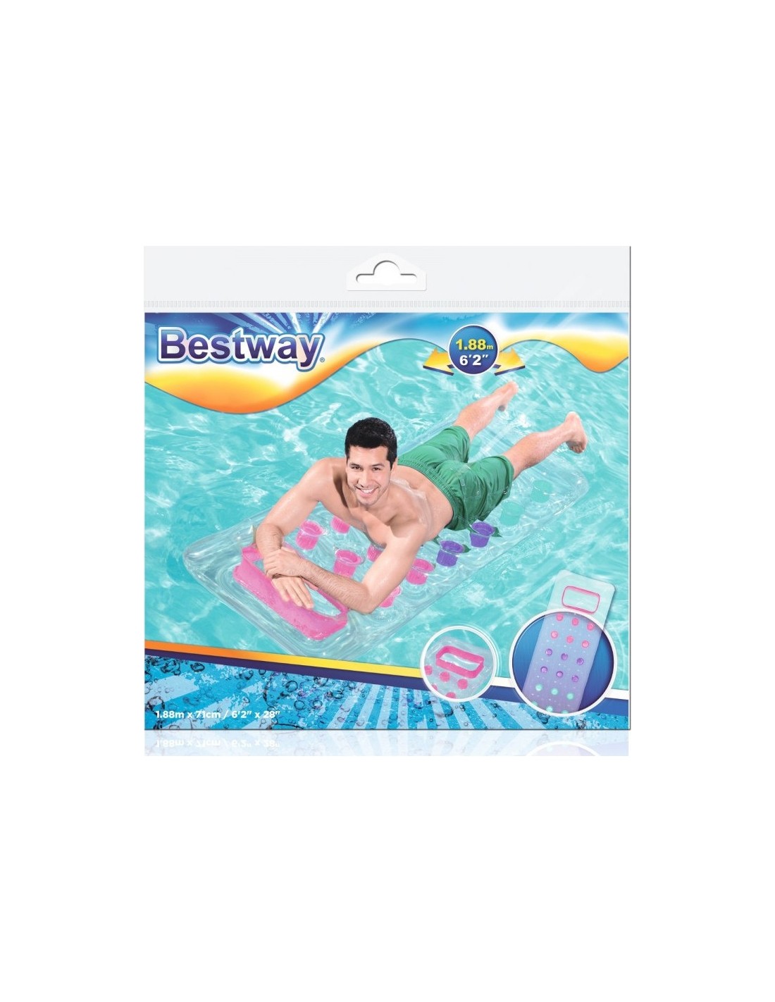 Dmuchany jednoosobowy materac w neonowych odcieniach nie tylko zapewni niezapomnianą przygodę na basenie czy plaży, ale także gwarantuje wyjątkowy komfort. Dzięki specjalnej konstrukcji z przegrodami Coil-beam, można cieszyć się stabilnym i wygodnym leżeniem, nawet podczas intensywnego szaleństwa na falach. Dodatkowo, przezroczyste okienko w górnej części materaca umożliwia obserwowanie podwodnego świata, co sprawia, że przygoda staje się jeszcze bardziej fascynująca.